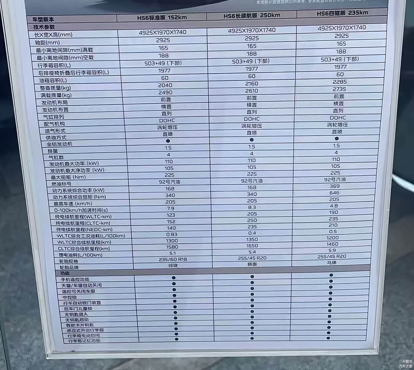 尺寸对标理想L6基本持平,长宽高4925/1970/1740毫米,轴距2925毫米。理想L6是4925/1960/1735毫米,轴距2920毫米。数字看起来差不多,实际上HS6在宽度和高度上略占优势,这意味着车内空间和视野会更开阔。轴距差5毫米可以忽略,两车的后排腿部空间应该在一个档次。