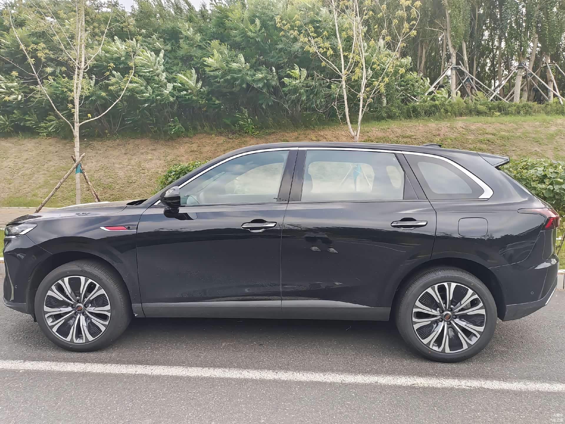 实车照片被拍到了, 红旗HS6 PHEV(图片 | 参数 | 询价)的真容终于能看清楚。这是一款五座中大型SUV,动力是亮点,双电机系统综合功率能到502马力,纯电续航最高250公里,综合续航1650公里。座舱配置也下了功夫,智能冷暖冰箱、零重力座椅、12扬丹拿音响全都有,这套"冰箱彩电大沙发"的组合确实抗打。