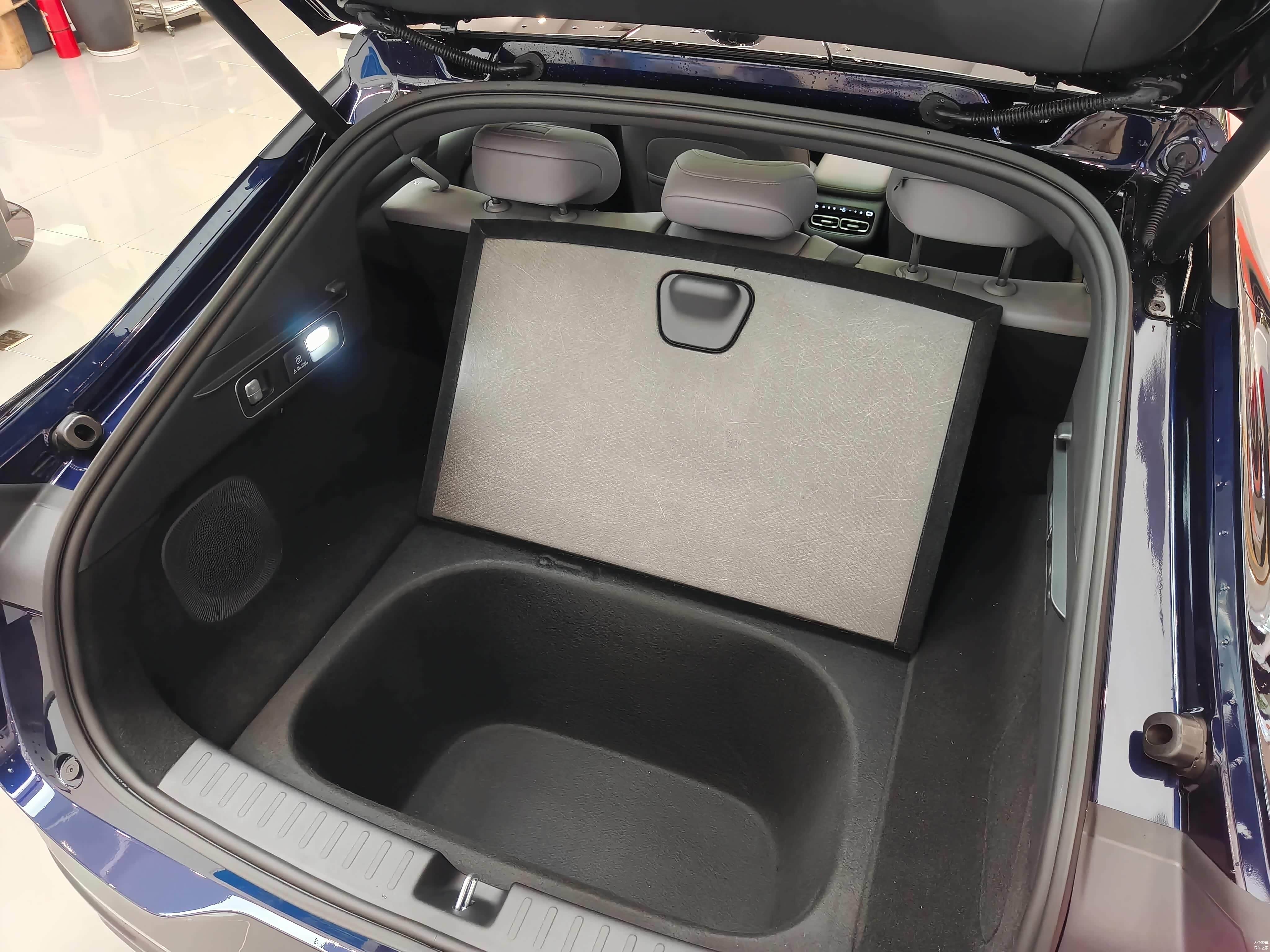 车尾部分采用了半环状的连续尾灯和发光的logo,与前面的设计形成了和谐的呼应。下方的八字形发光条与C形线条相结合,底部装饰有夸张的熏黑扩散器和小鸭尾的设计,使得整个尾部展现出强烈的运动氛围。掀背式的尾门设计允许通过轻拍车标来打开,配备了81升的下沉空间和后排座椅的一键放倒功能,确保后备箱的实用性不会减弱。