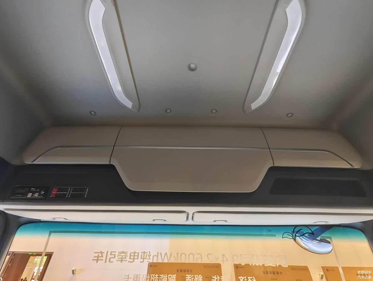 车内前方的行驶记录仪、储物箱,车顶设有照明灯。