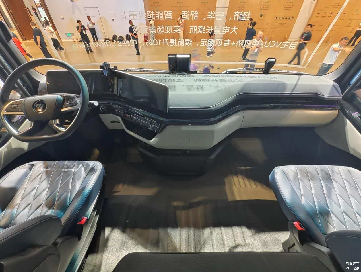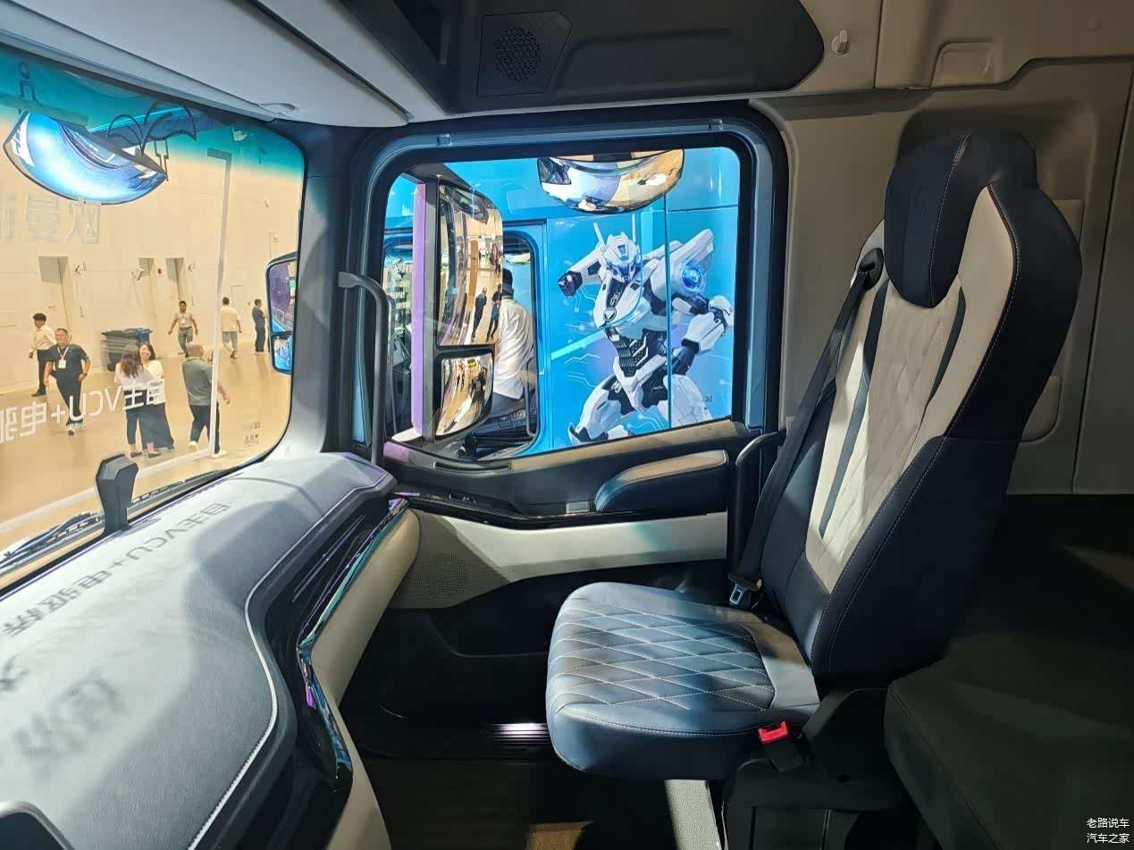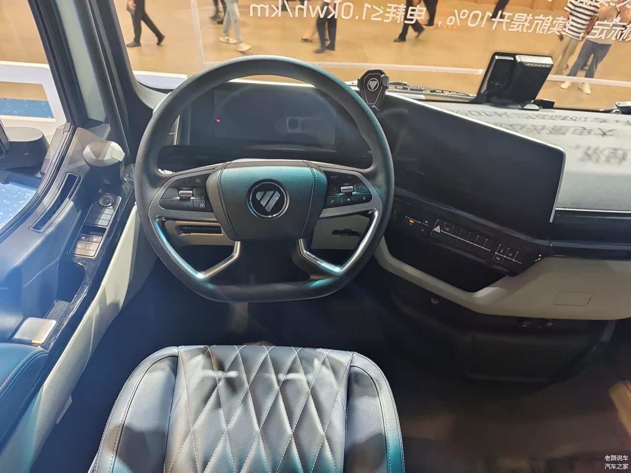 电机采用8层扁线油冷电机,峰值功率380kW约516.66马力,最大转速1200r/min。采用陶瓷轴承、双V转子集中磁场设计,滚动阻力低,使用寿命长。油冷水冷耦合热管理让车辆更节能高效。自主VCU+电驱桥+专项标定,电耗≤1.0kWh/km,续航提升10%。电驱桥采用3级传动,效率更高。智能化换挡控制策略带来极致舒适,3个挡位速比分别是67.669、31.406、14.887,能适应不同负载和路况。
