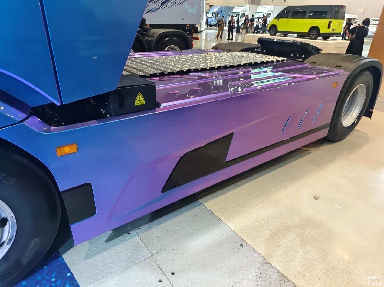 图片上这辆又蓝又紫的新车就是欧曼银河9 4×2 600kWh纯电牵引车。车辆采用高泳透力电泳漆、福田自研2K清漆工艺,经过高精度机器人自动喷涂带来极好的漆面质感,不仅颜色鲜艳透亮,还有着抗划伤的特点。