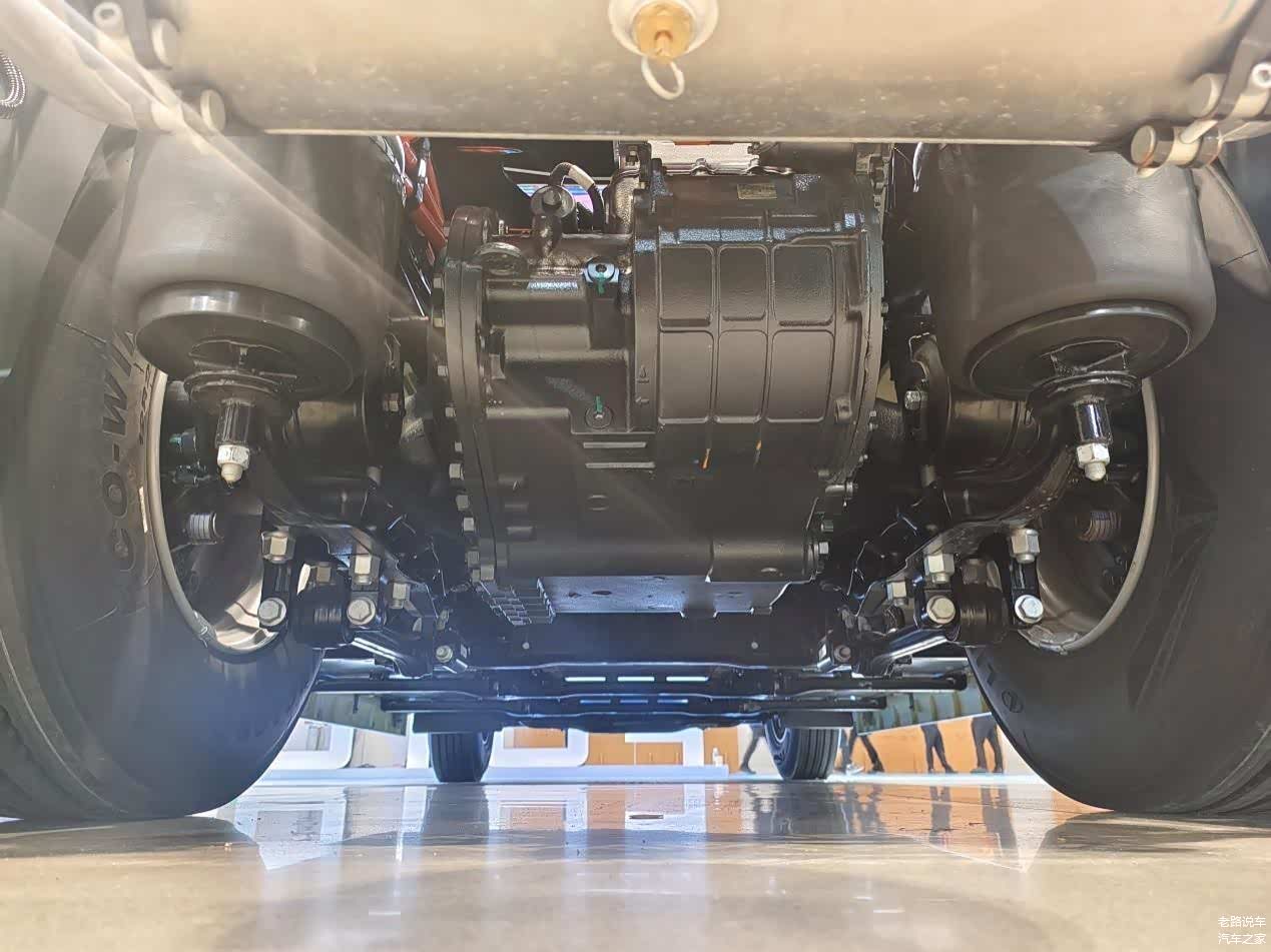 电驱桥采用整体式高强度桥壳,承载力好、耐冲击,B10寿命160万km。其与传统燃油车的驱动桥有着相同的离地间隙,柴油车能过去的起伏路面对它也没有太大威胁。整体密封性同样良好,涉水600mm可轻松通过。同时融入极致轻量化技术,减重30%。