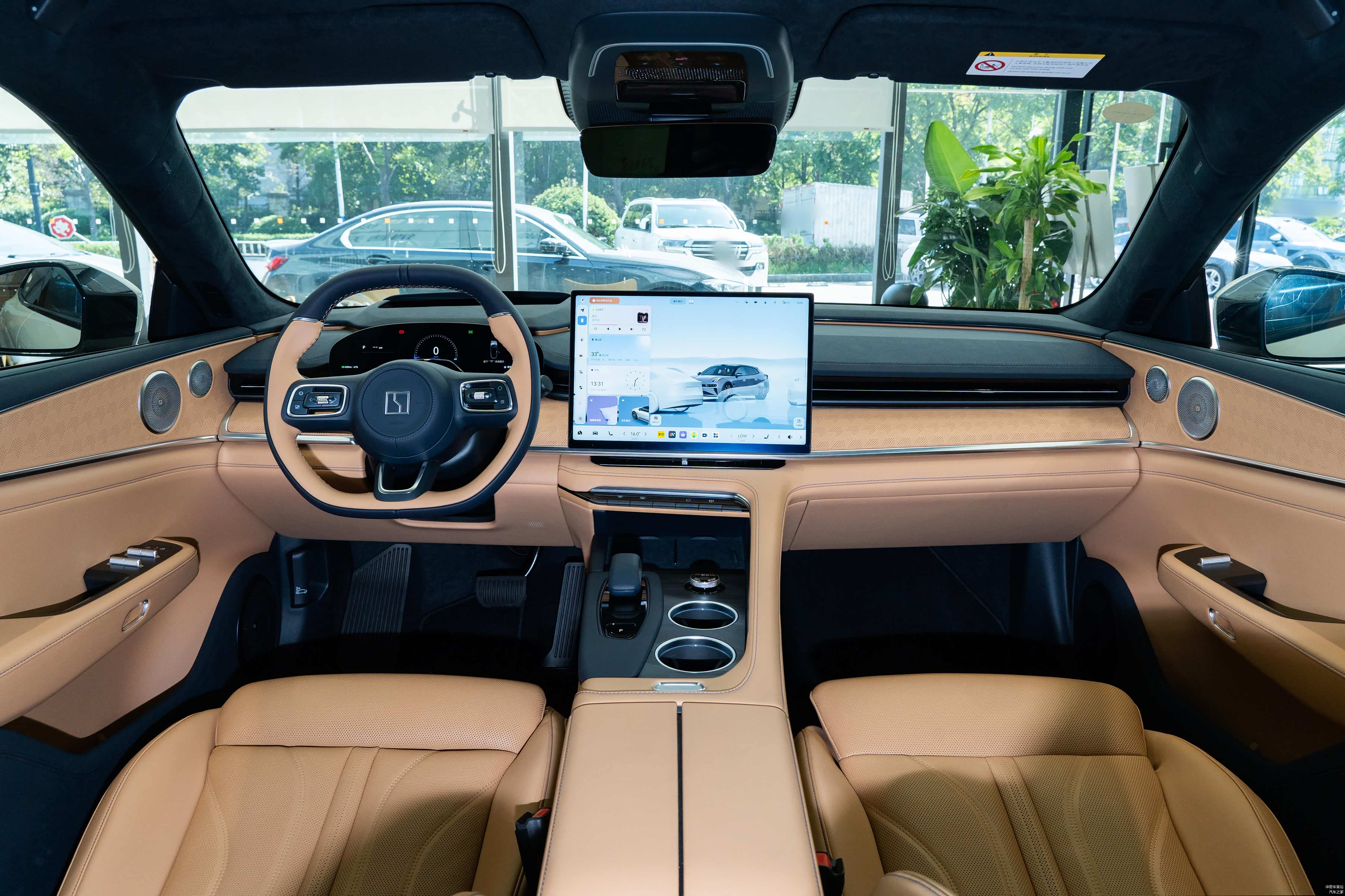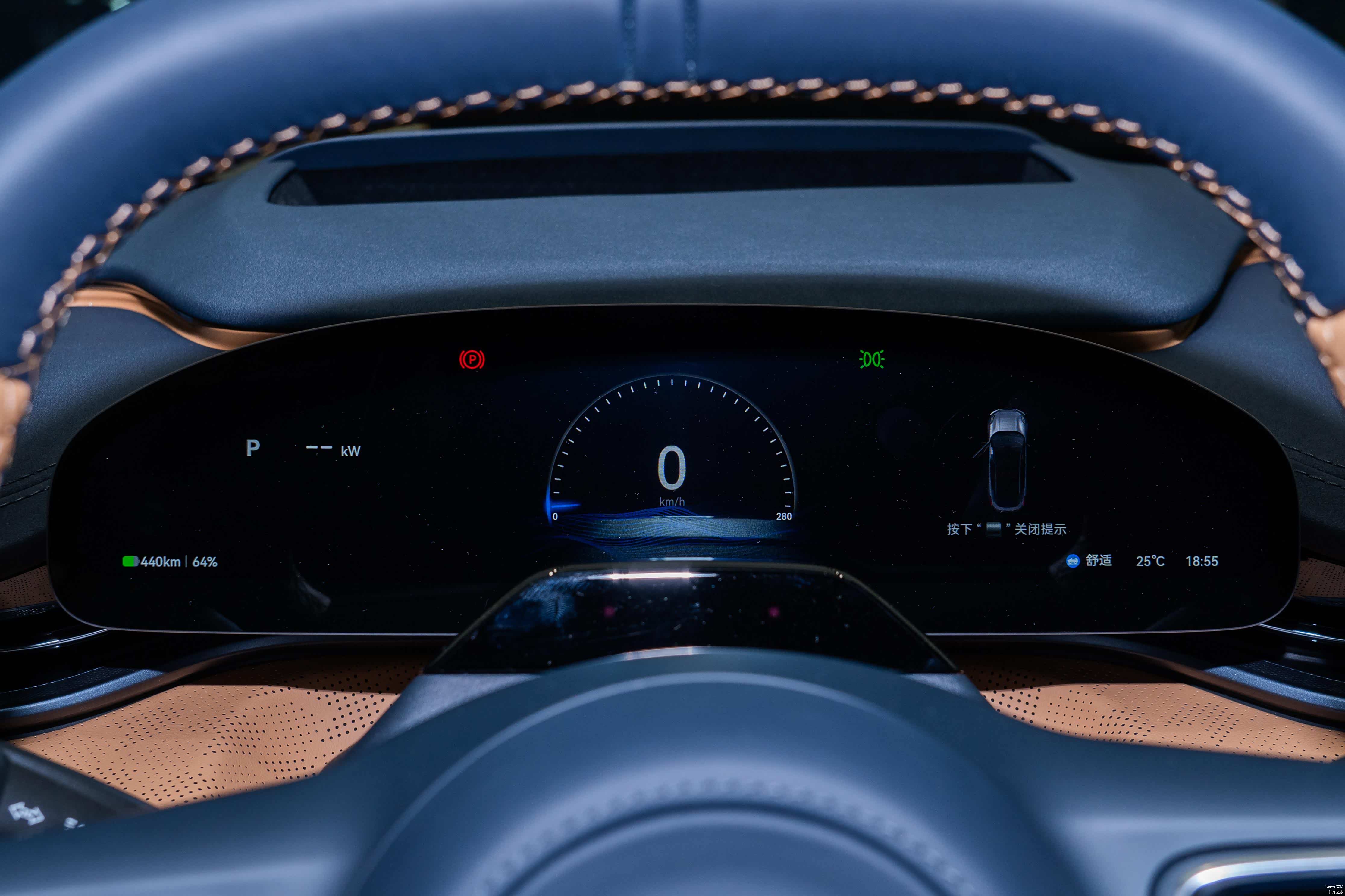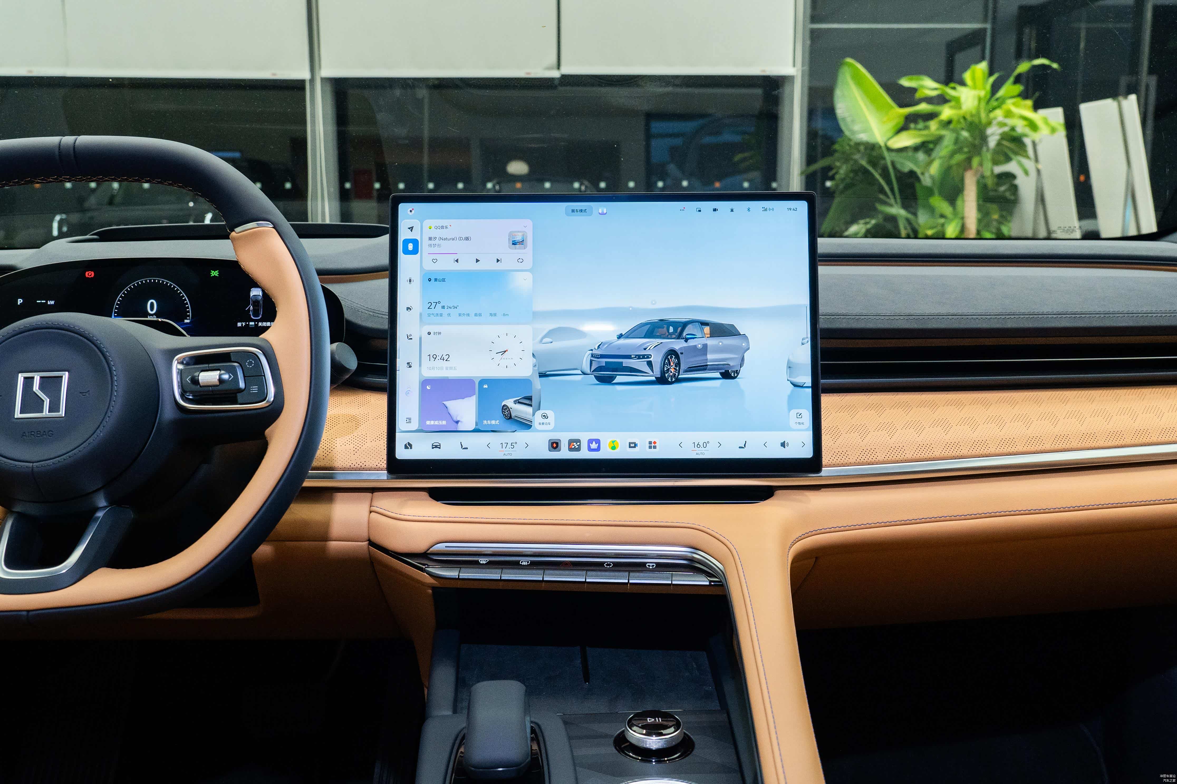 再看科技配置,全液晶仪表 13.02 英寸,中控是 16 英寸 OLED 屏,3.5K 分辨率看着特清晰,还标配 AR-HUD,39.3 英寸大尺寸,导航信息直接投在前挡风上,不用低头看屏,开车更安全。智能配置也拉满,全车无钥匙进入、50W 手机无线充电、110V 电源插座都有,出门充电、插设备都方便;车机是高通骁龙 8295 芯片,5G 网络 + OTA 升级,语音控制能分区域唤醒,说 “Hi,EVA” 调空调、切歌,反应贼快。
