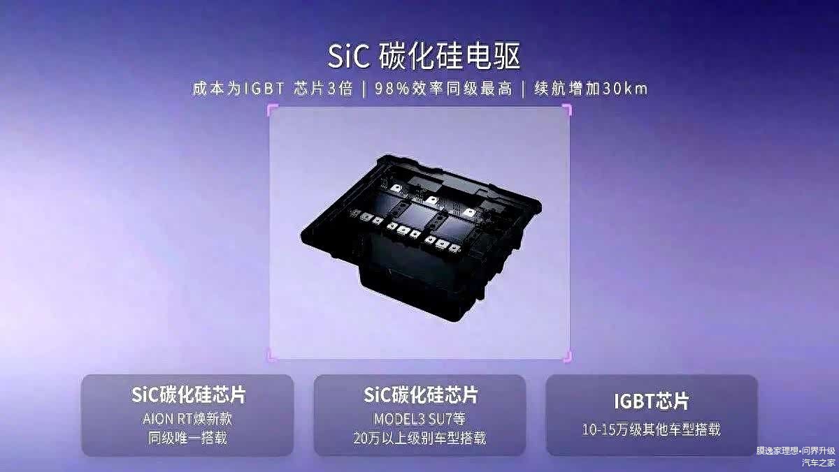 在把电池的电能输送给电机的过程中,传统的IGBT方案会有一定的能量损耗,而碳化硅能极大地减少这种损耗,让每一度电都能更高效地转化为车辆的行驶里程。