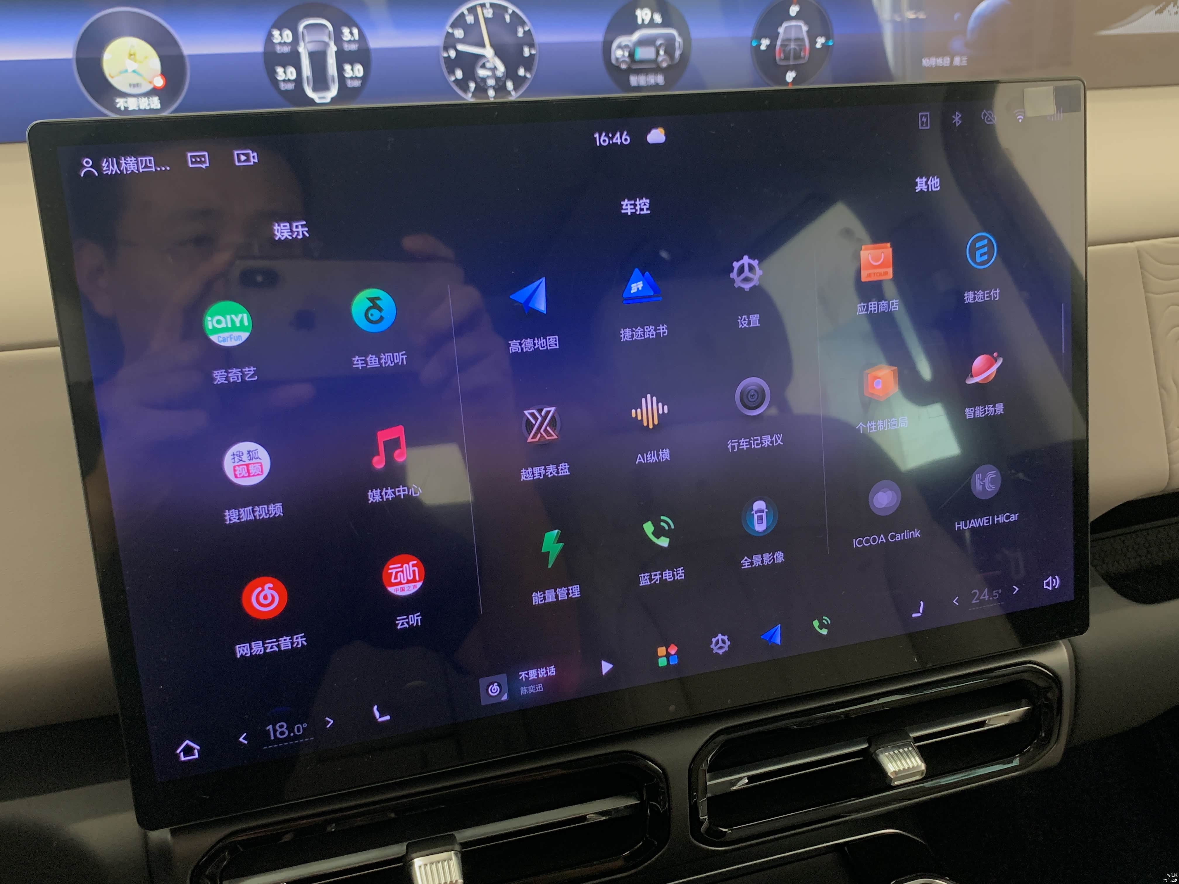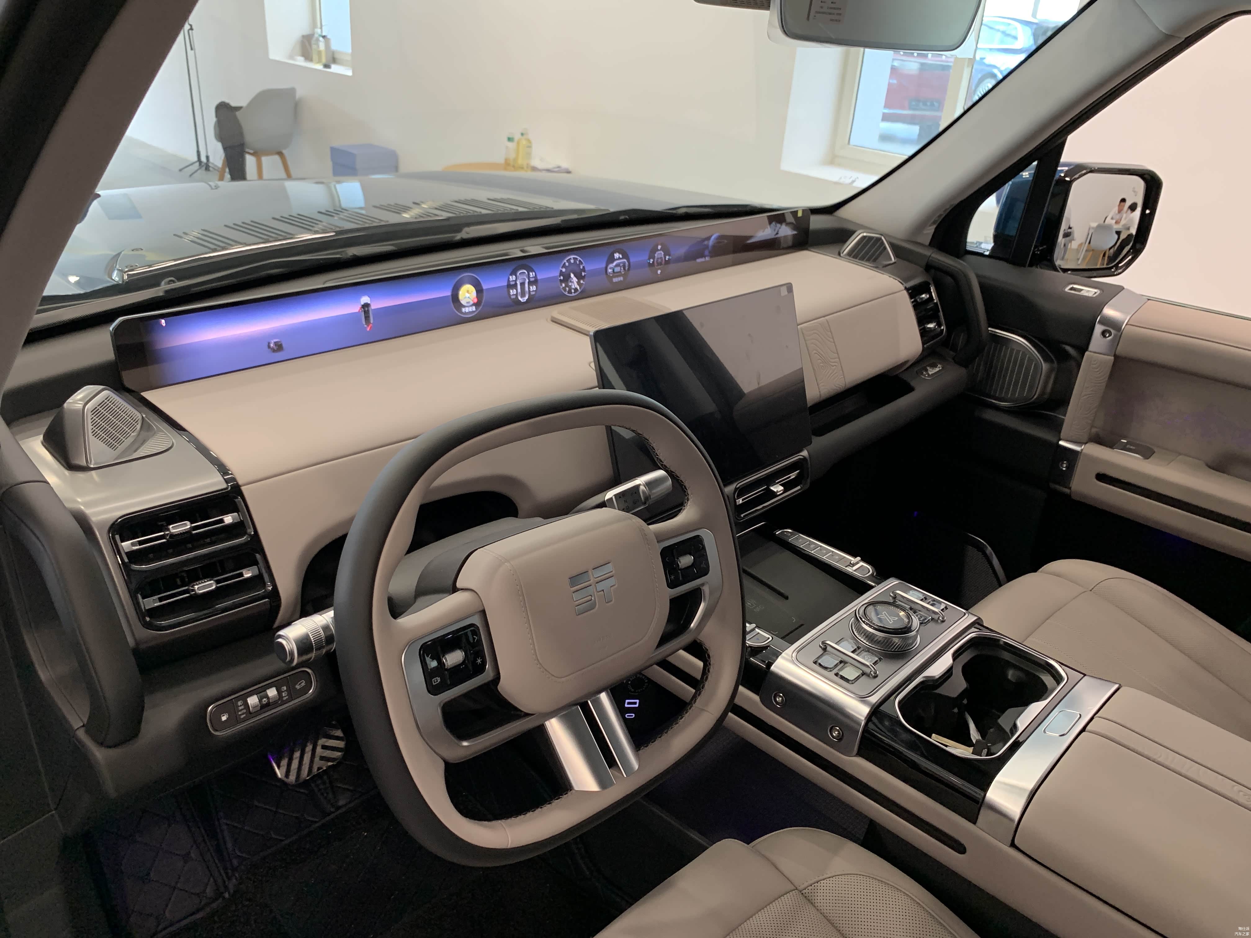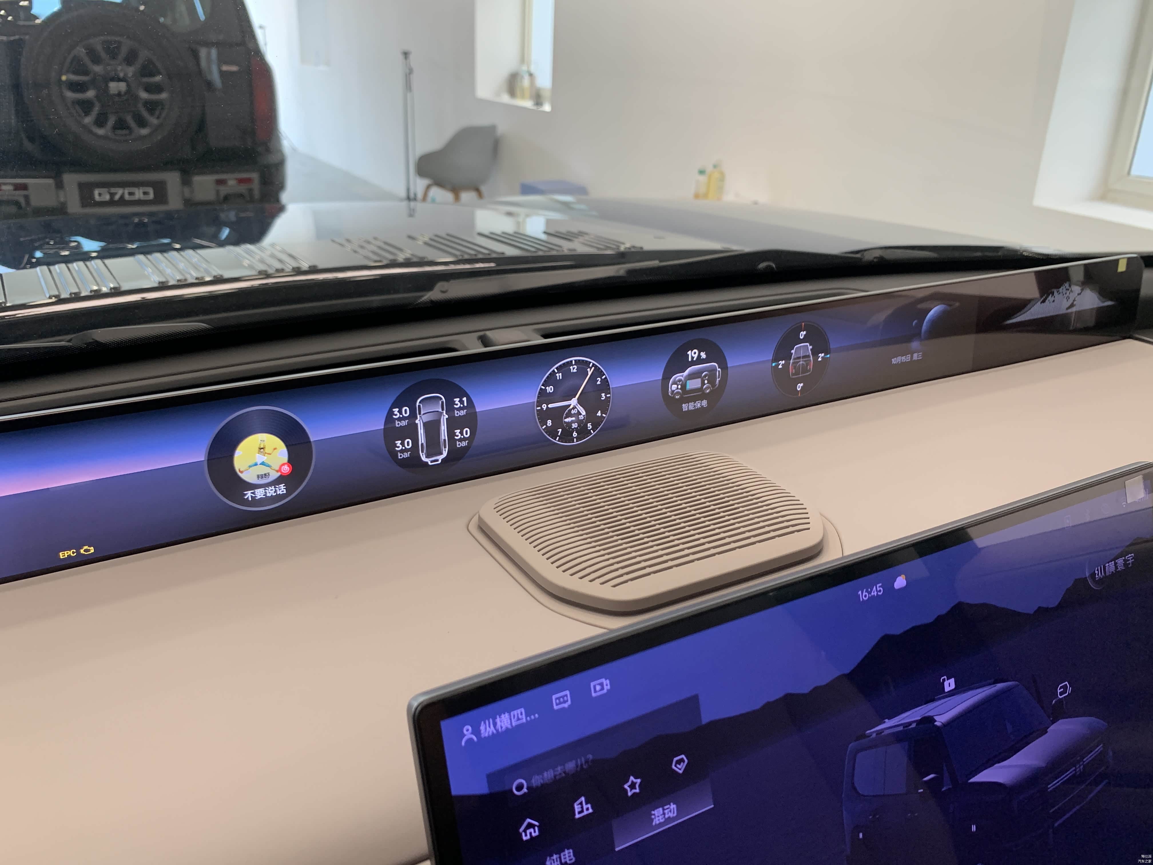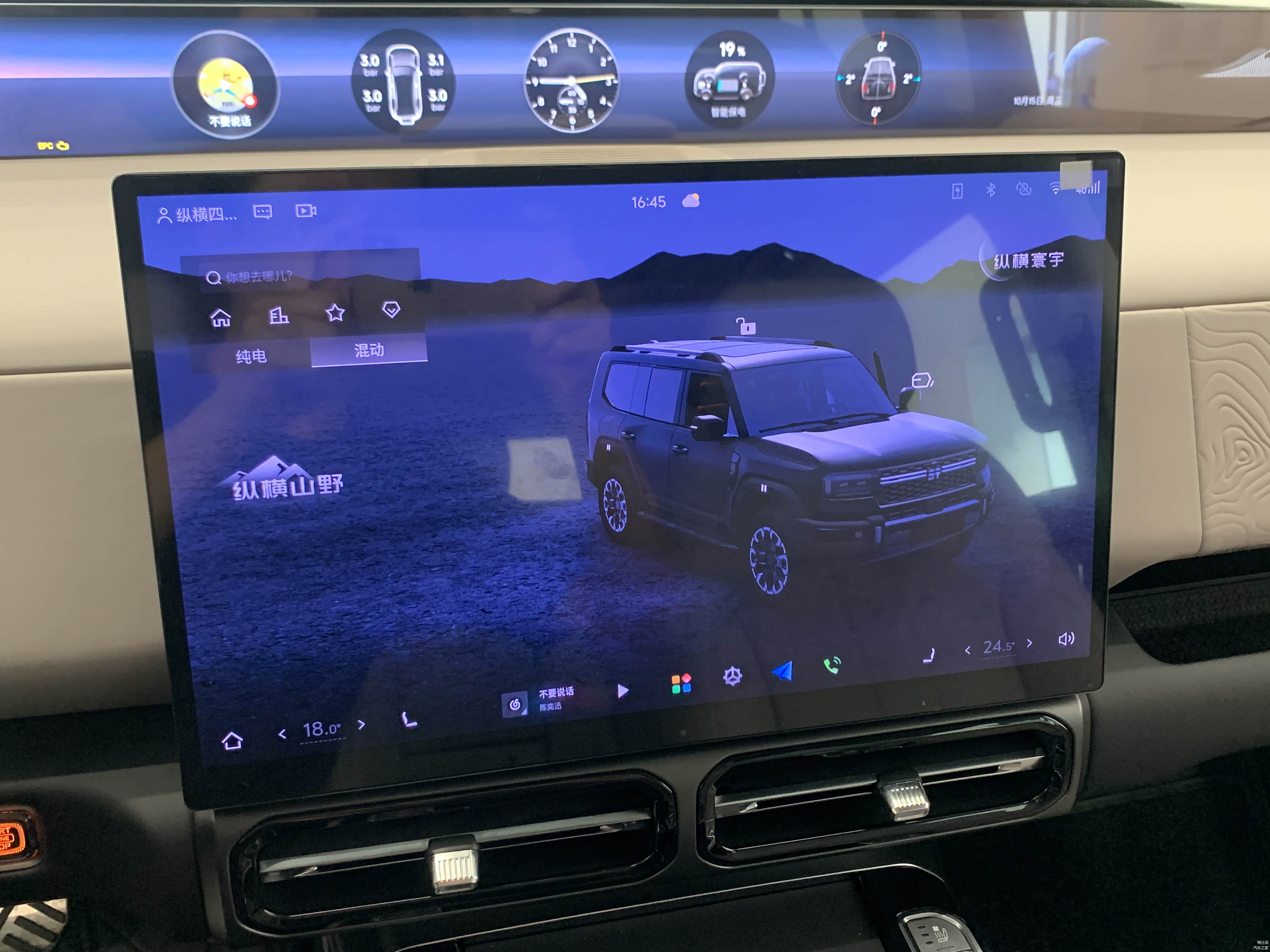 智能座舱方面,采用了15.6 英寸中控大屏,搭载纵横OS 人机交互系统。在35.4 英寸山脉天际屏的辅助下,越野信息,各种导航、娱乐功能,都比较齐全。