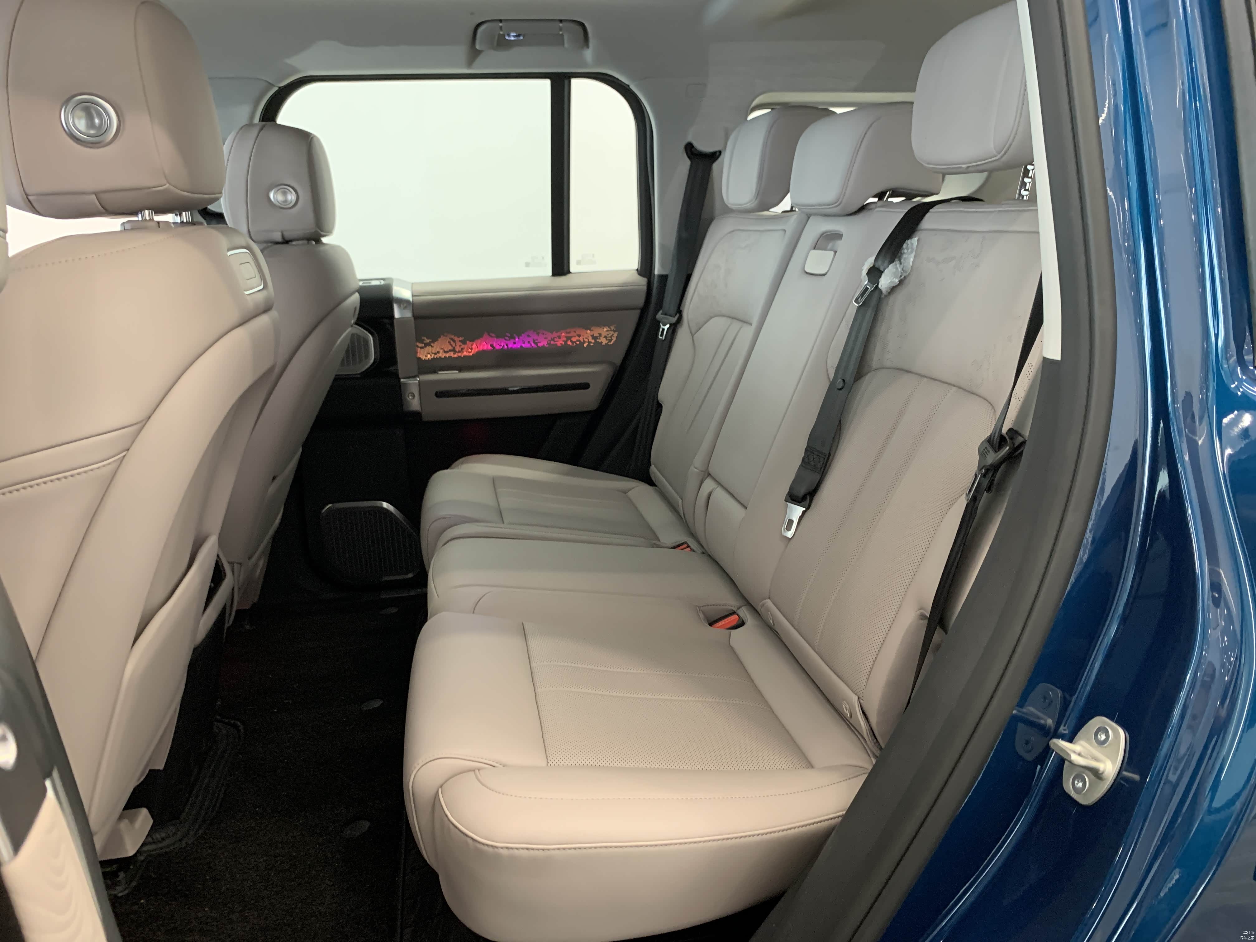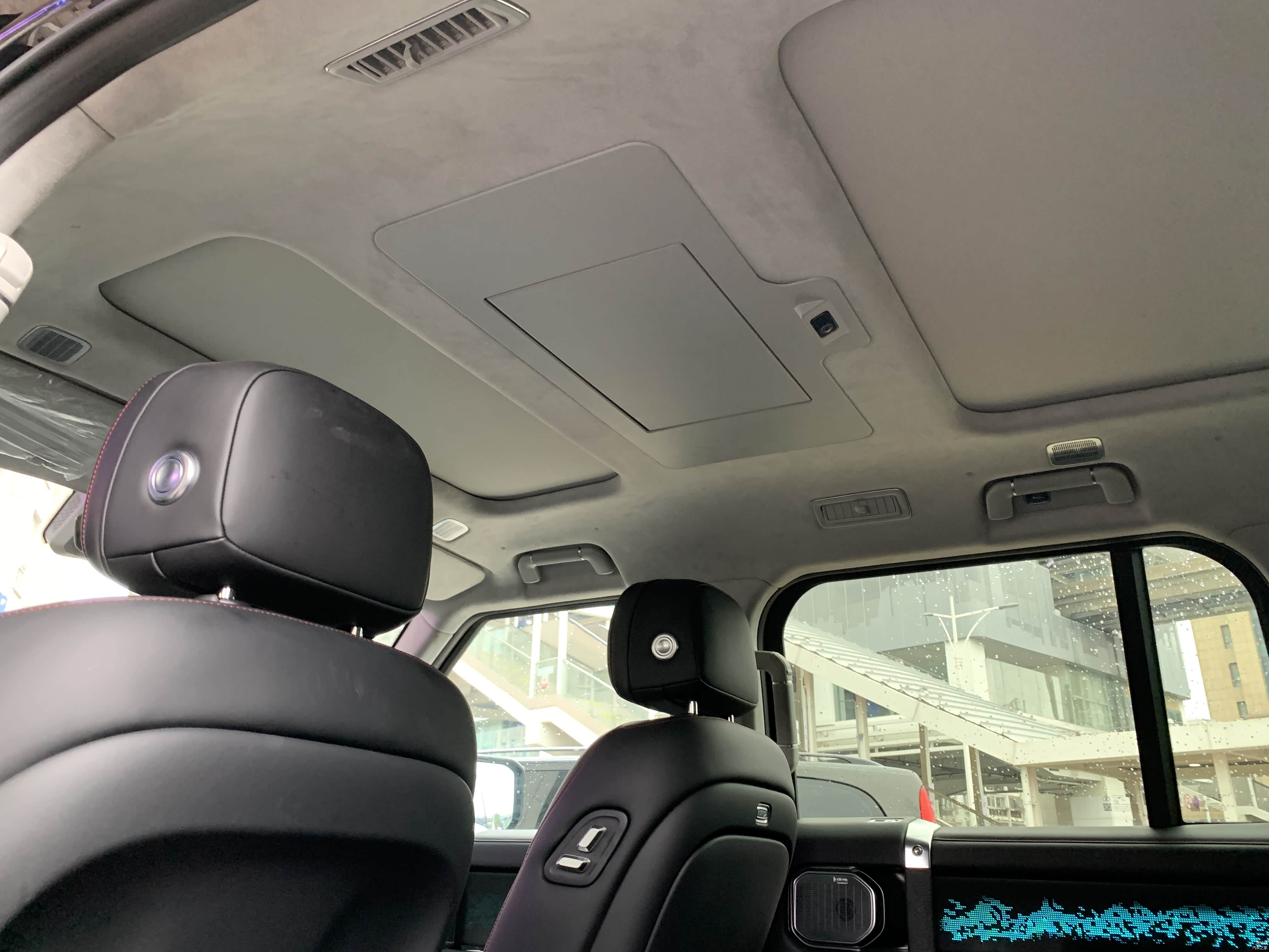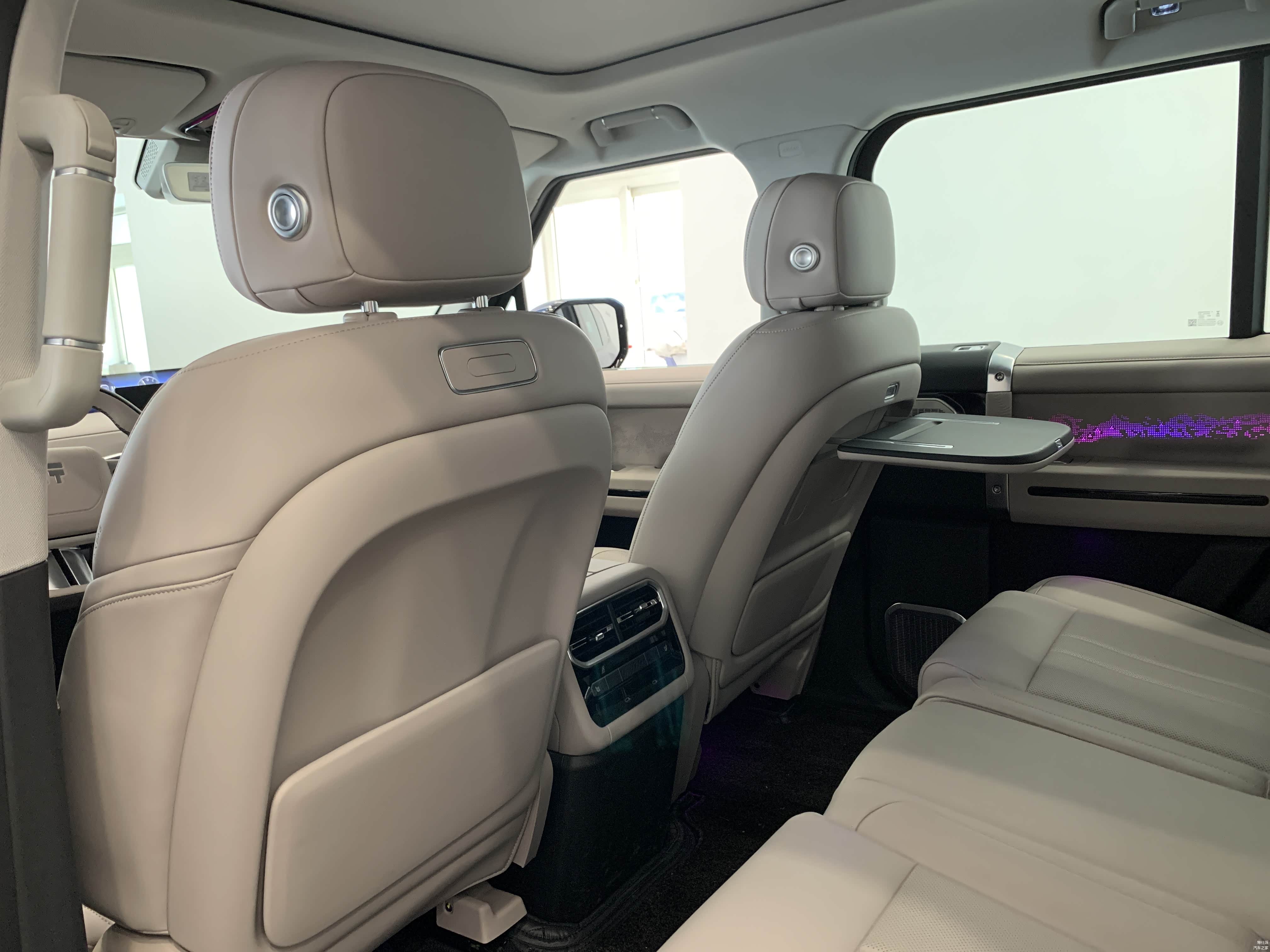 高配车型二排搭载17.3英寸3k家庭影院大屏后,天窗为分体式。低配是全景天窗。
