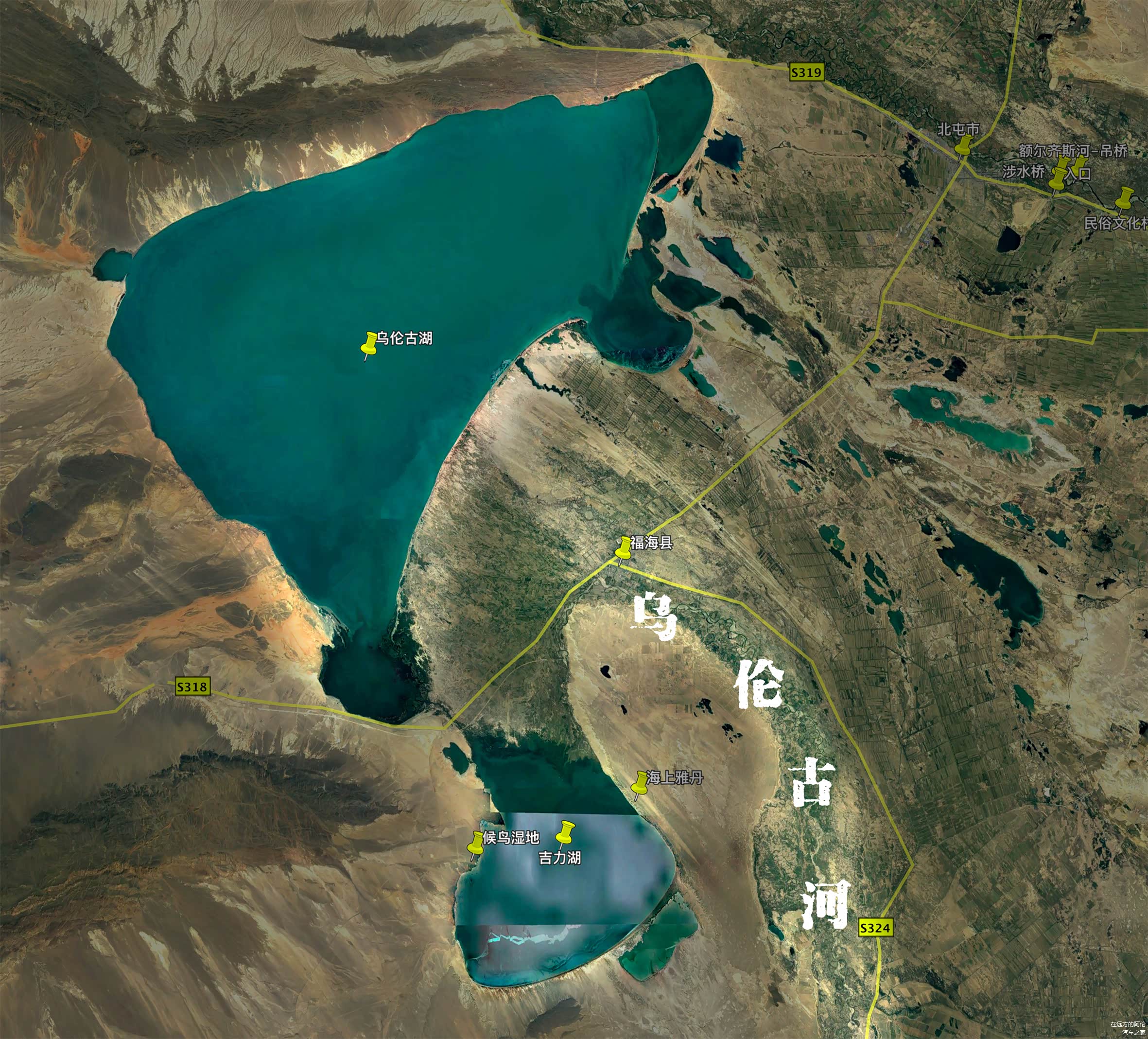 其实在很久以前,这两个湖原本是一个湖,名字就叫乌伦古湖,湖水供给靠的是东边的乌伦古河,后来湖面水位开始下降,再加上乌伦古河不断淤积形成了冲积扇,于是整个湖泊变为了南北两个大小不一的湖。