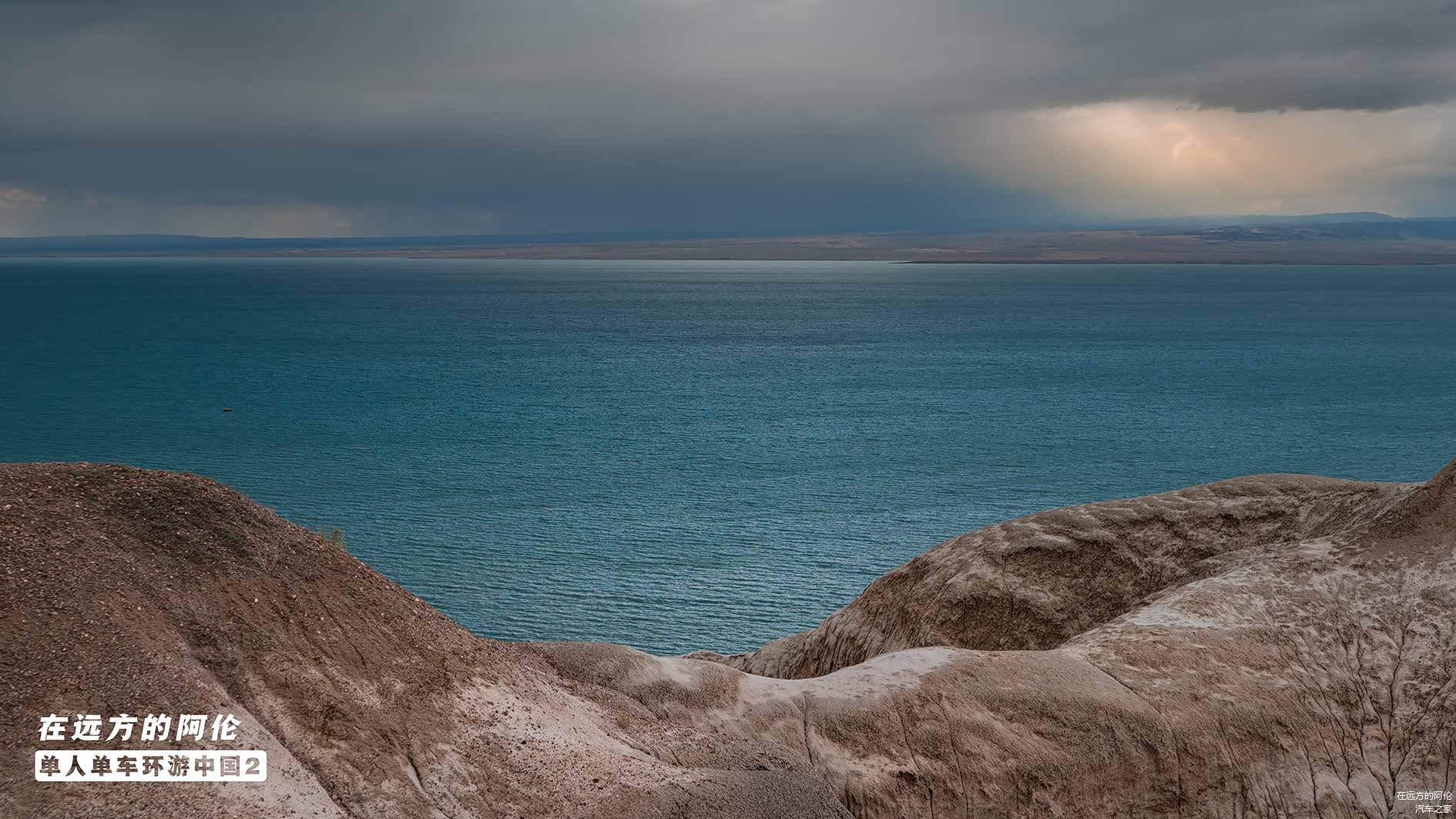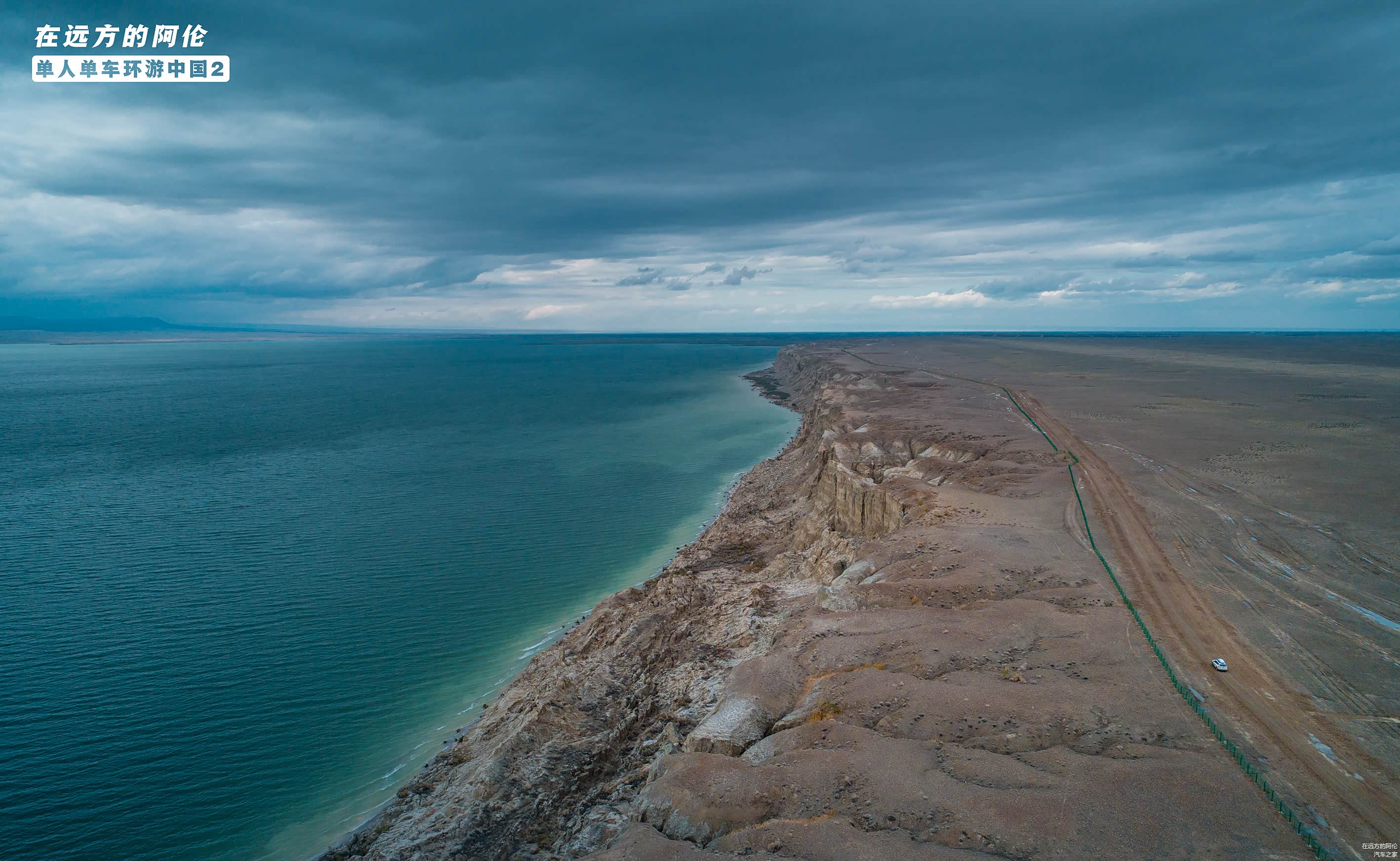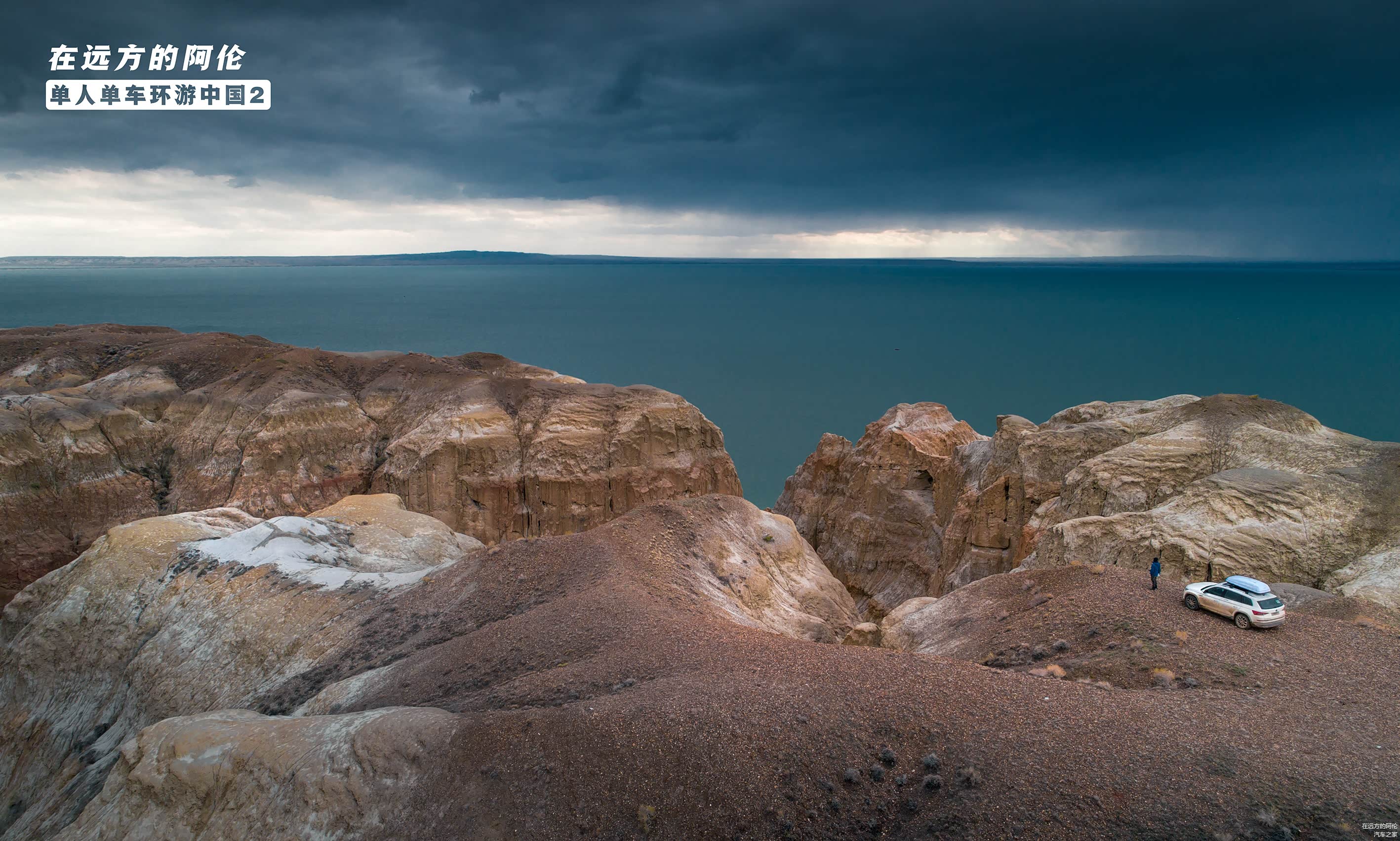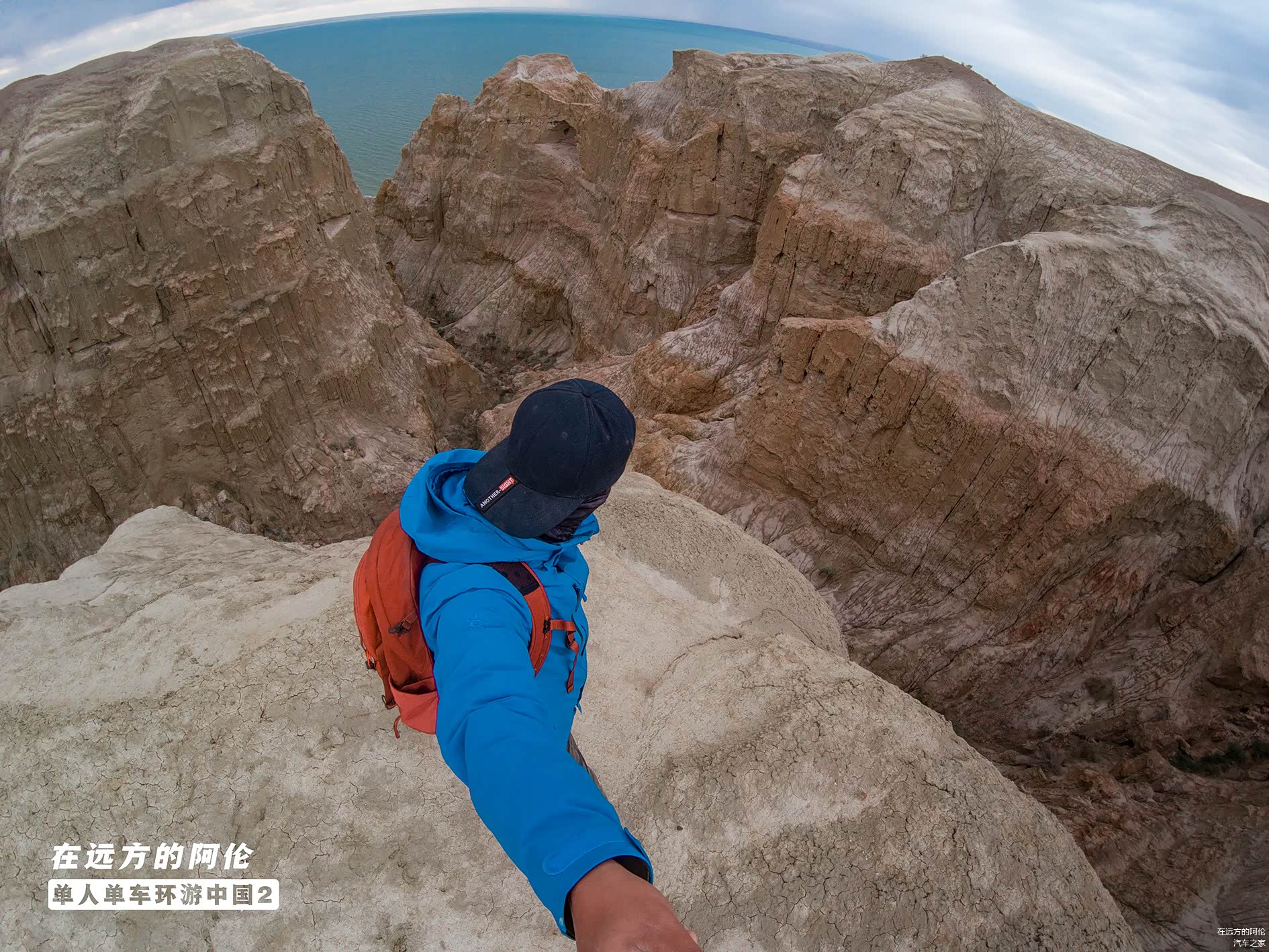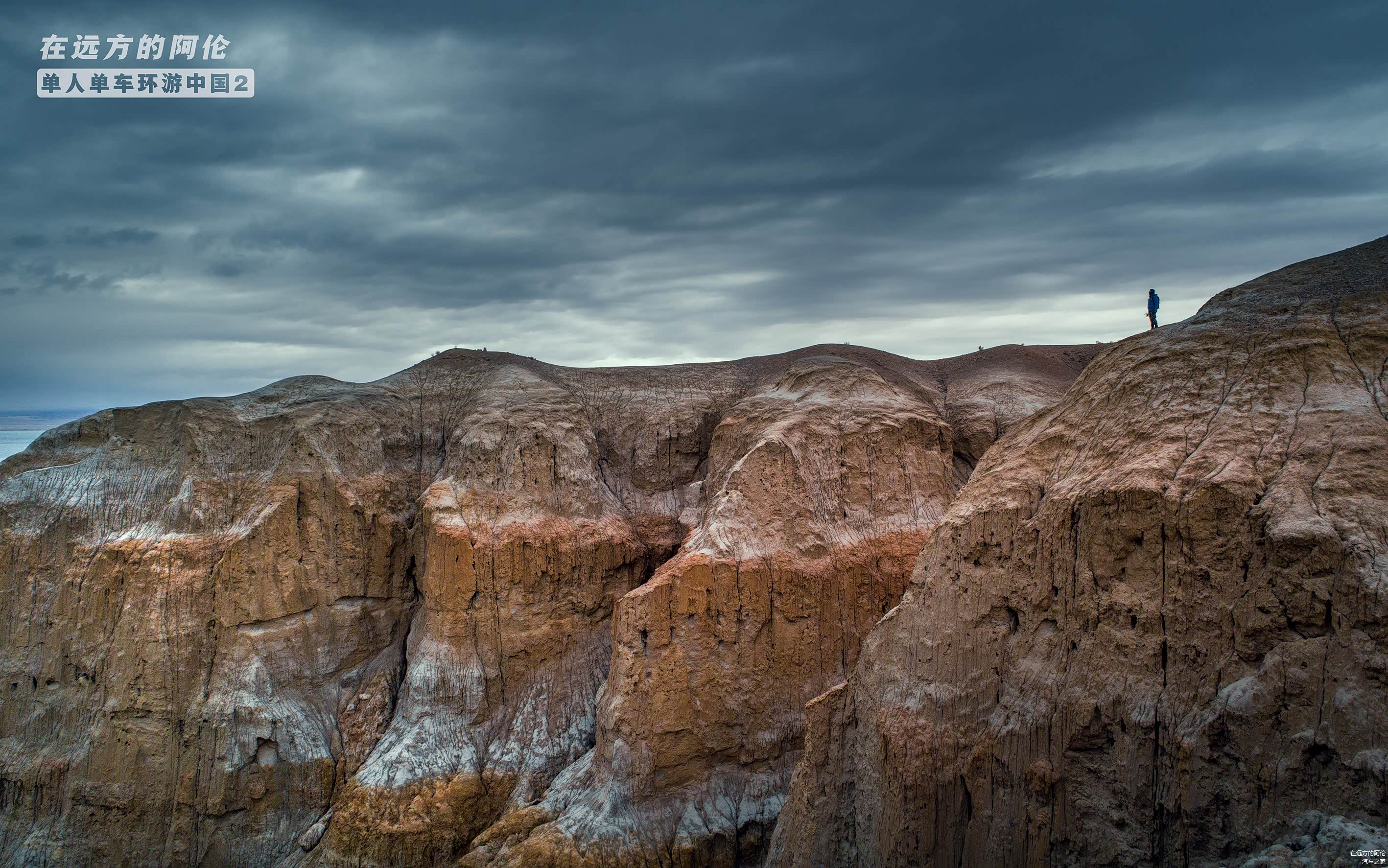 当我下了车,慢慢走向雅丹悬崖的时候,我才看清楚了这个在阴郁笼罩下,泛着蓝色幽光的外星湖泊。