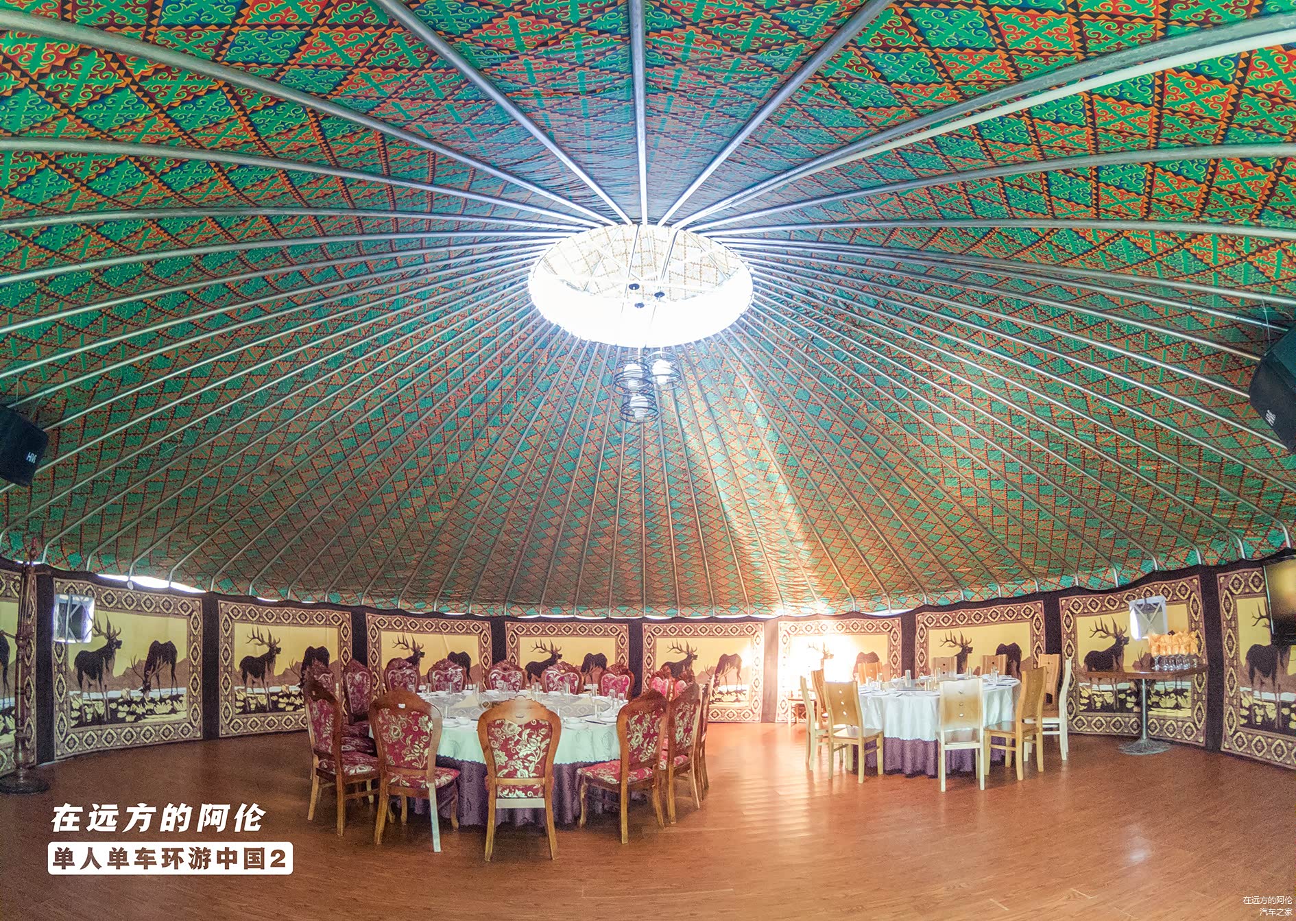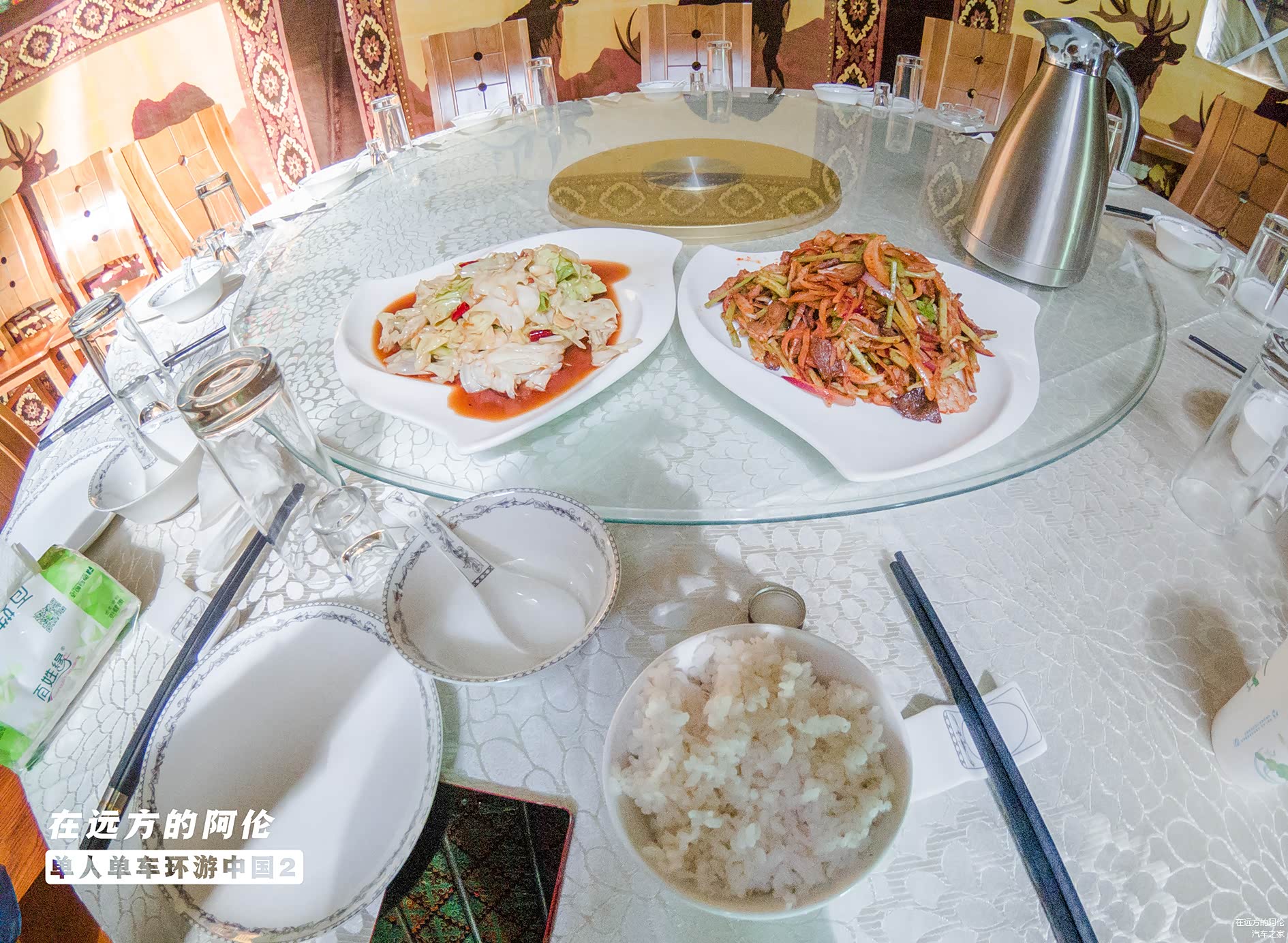 早餐嘛是没捞着,午餐倒是一个人在这里点了一盘炒牛肉,一盘炒白菜吃了个底朝天......这是我第一次一个人坐在一个大圆桌上吃饭,一个小服务生问我要不要再订只烤全羊,我笑了,因为我还从来没有体验过,在车里抱着烤全羊,边睡边啃的体验。