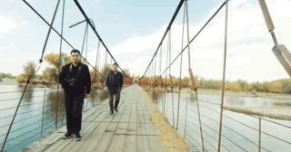 经过一座小而美的吊桥,这宽度刚好能容下大白胖过河.....桥头堡完全是刚刚好的宽度。
