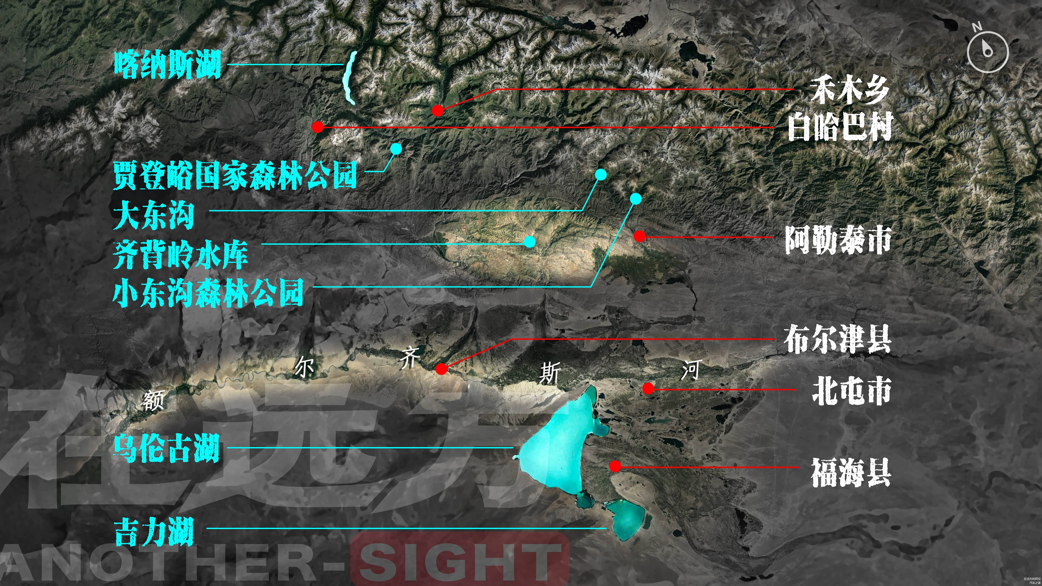 图中部的三个标记,是我当天前往额尔齐斯河流域的入口和途经点