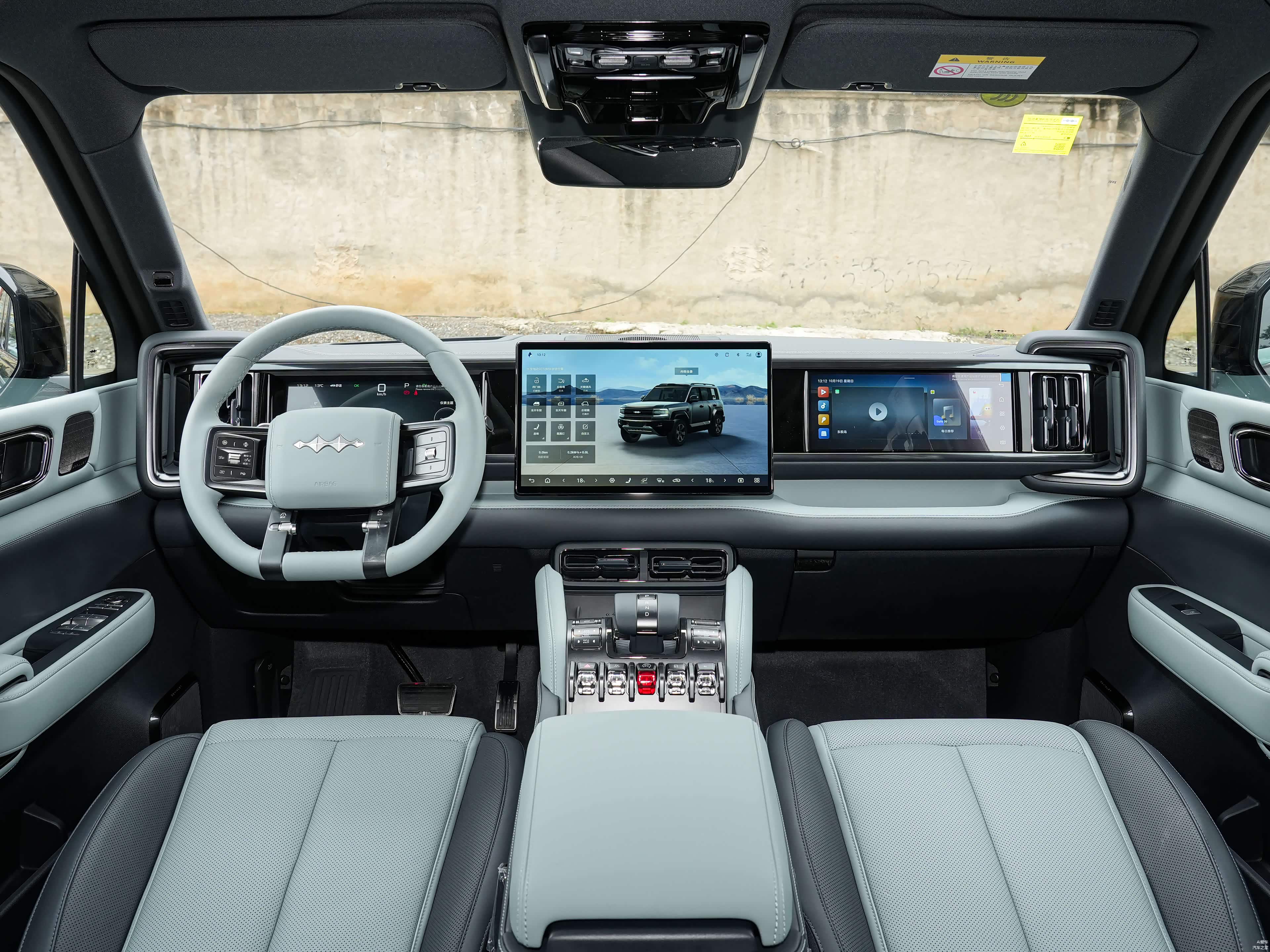 内饰没做什么改动。三幅多功能方向盘,全液晶仪表,悬浮中控屏,副驾娱乐屏,该给的屏幕都给了。电子挡把带升降功能,保留了实体按键,操作起来比较直接。整体内饰风格偏硬朗,跟外观气质匹配,但设计感和精致度只能说够用。