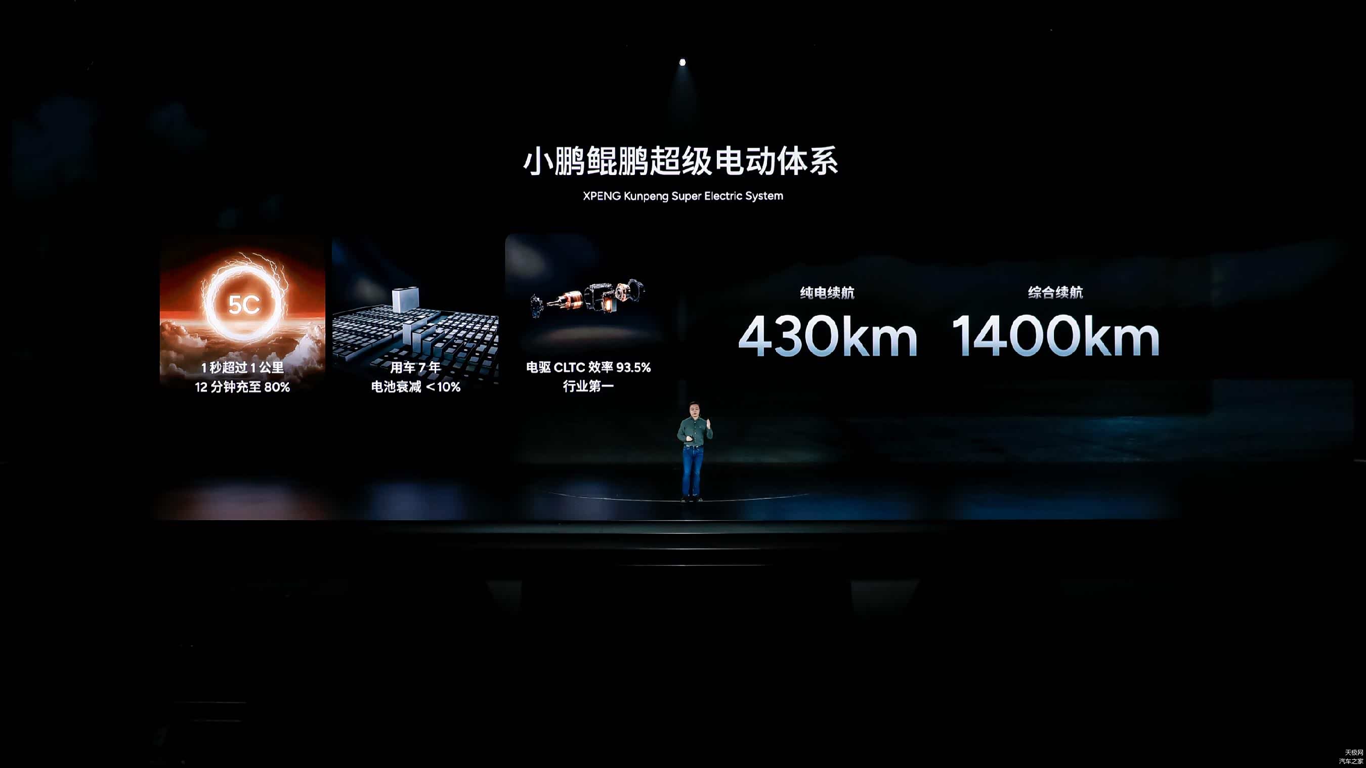 小鹏鲲鹏超级电动系统基于全域800V高压碳化硅平台打造,搭载了5C超充AI电池、混合碳化硅同轴电驱和静音增程器三大核心技术。