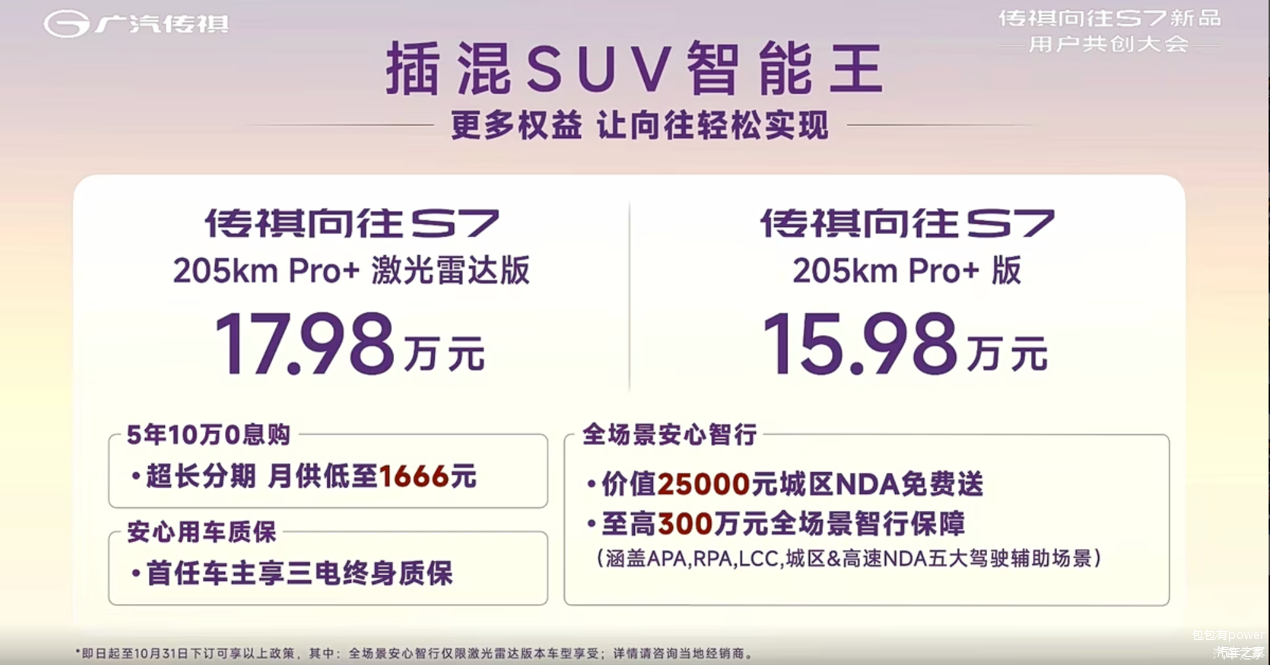然而从上述分析中相信很多人已经发现了,虽然传祺向往S7此前上市的六款车型可以涵盖不同消费者的绝大多数用车场景,但是这六款车型中又细分为三个纯电续航版本、两个辅助驾驶版本以及两驱四驱版本,可选性丰富但是过于复杂。对于消费者来说最看重的无非就是长续航和辅助驾驶这两点,而前不久刚刚上市的两款传祺向往S7Pro+版本车型就让消费者无惧选择困难,直接一步到位。