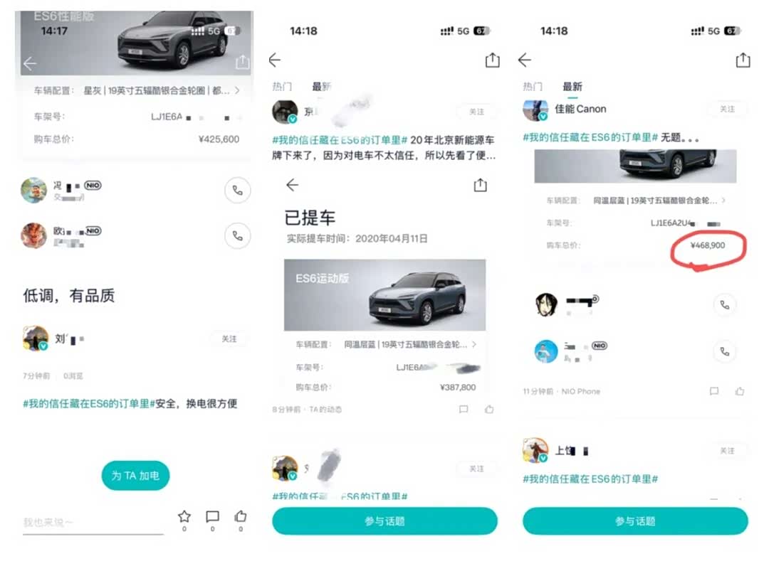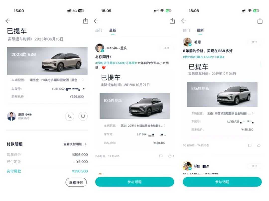 蔚来ES6(图片 | 参数 | 询价)近期迎来30万台交付里程碑,蔚来在车主社区里发起“晒当年购车订单”活动,不过跟帖画风一不小心变成了“韭菜争霸赛”,车主积极比拼谁当年的定车价格更高。