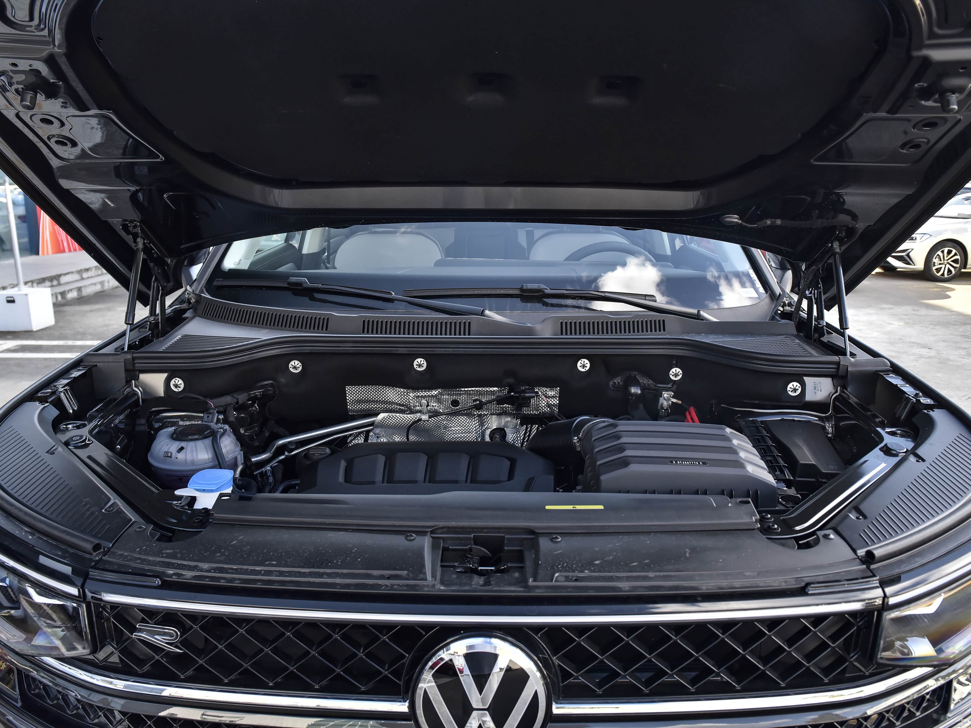 普通版车型下包围部分采用了三段式设计,两侧配备有导流槽,底部则是梯形进气口;高配车型配备有R-Line套件,下包围部分则是双层设计,内部使用了蜂窝状结构进行装饰,有着更强的运动气息。