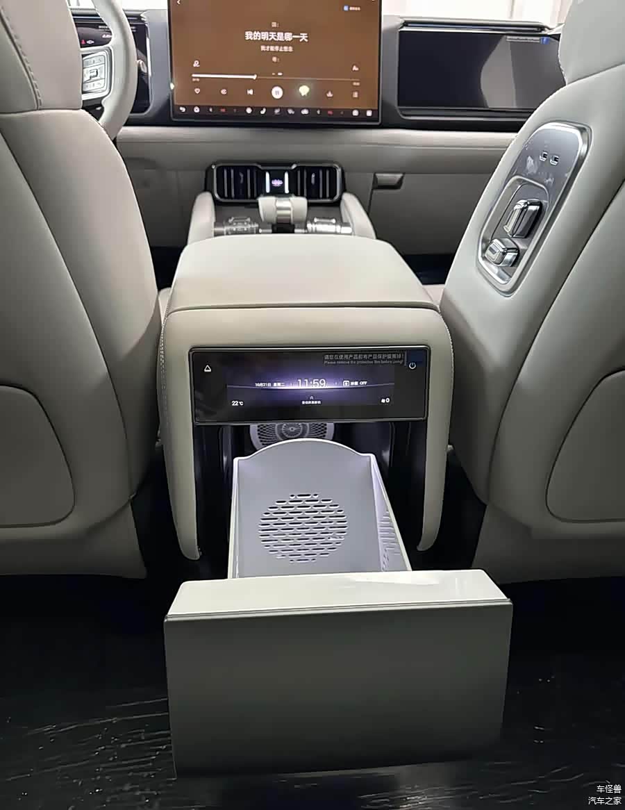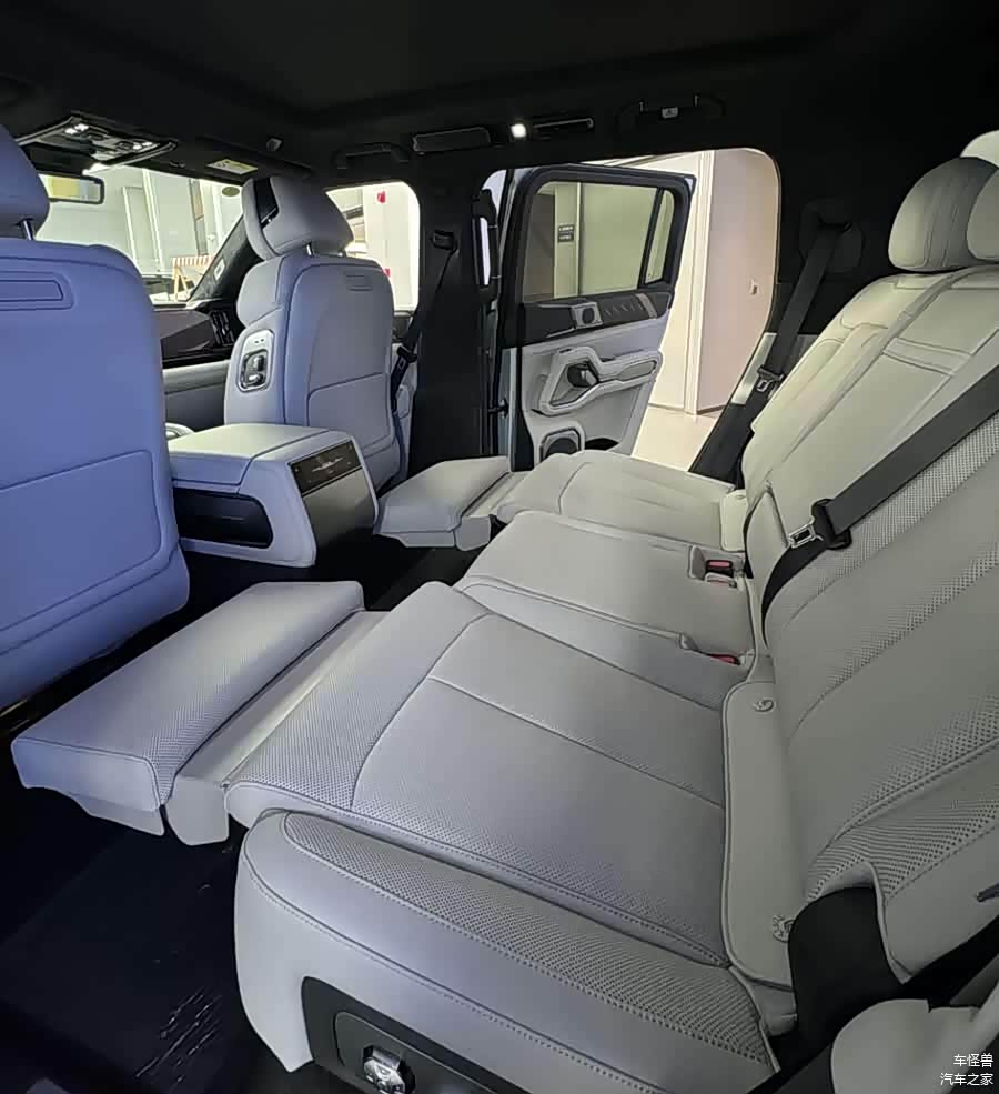 此次改款的主要焦点在于空间的优化。通过取消第三排座椅,5195/1994/1875mm的车身尺寸和2920mm的轴距,为后排乘客提供了更为宽敞的腿部空间和后备箱空间。后排的零重力座椅配备了四向腿托调节功能,集成了控制面板,可以操作前排的扶手箱和双开门的车载冰箱,从而提高乘坐的舒适度和功能性。