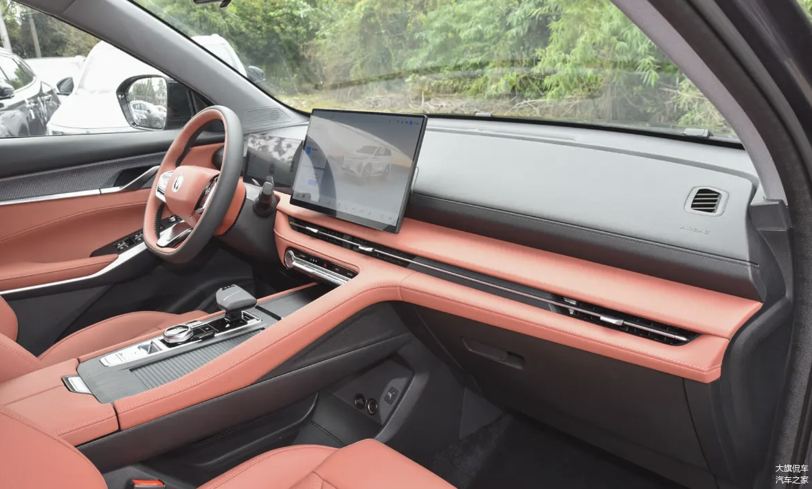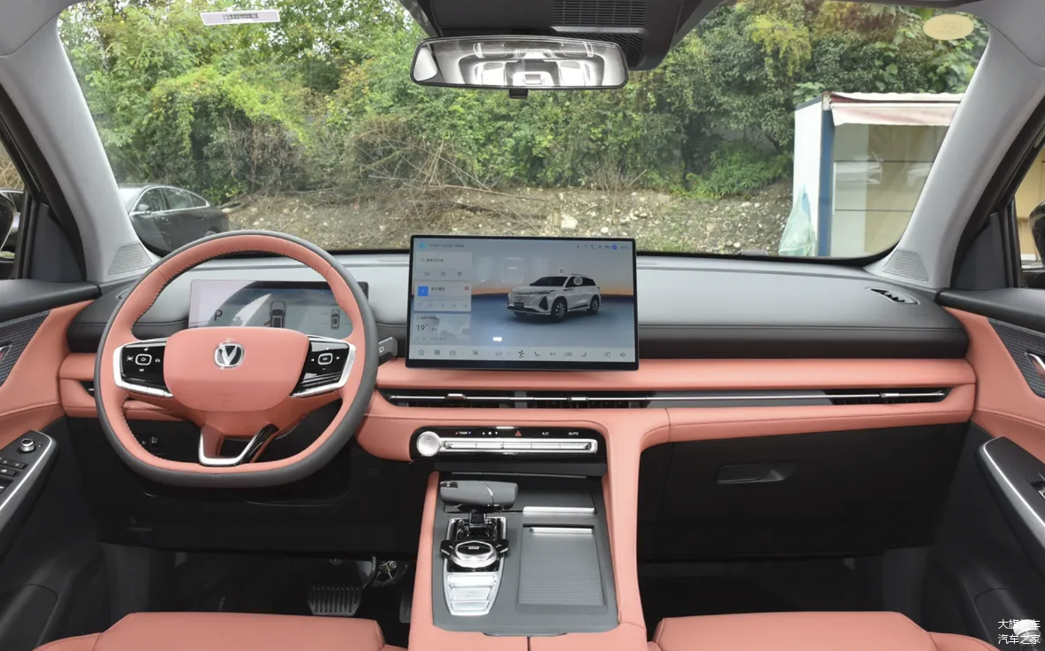 相比外观,长安CS75 PLUS智慧冠军版在内饰方面所迎来的变化就要明显起来。虽说依旧延续此前第三代长安CS75 PLUS车型的整体内饰布局,但新车整体内饰升级后则要更显简洁。原本的双联屏被取消,更换为悬浮式液晶仪表+中央大尺寸悬浮车机大屏设计,同时原本偏向驾驶员侧的仪表台造型也更换为平直对称设计,中央副仪表区域的功能按键也更换为质感更好的金属材质,总的来说还是更加简洁且具科技感。