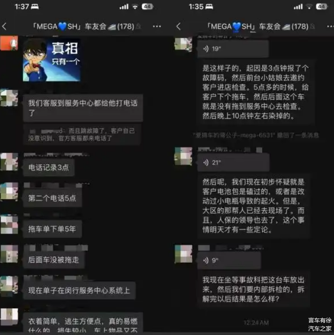 不得不说,对于理想MEGA的自燃,网上有着铺天盖地的讨论。其中一张截图内容就在网上流传,内容称它之所以起火,是事故当天已经出现故障,下了拖车单但是车主没去修,另外还表示“初步怀疑客户电池包是磕碰过的”。也是,一辆看着正常行驶的车,就这么莫名其妙自燃了,如果不是事故车辆早已出了问题,那就是它本身有缺陷。