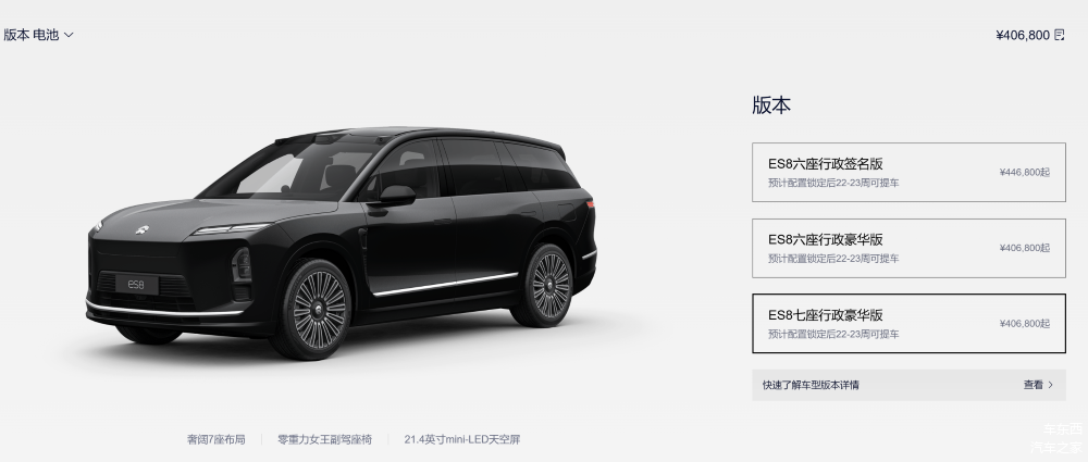 ▲蔚来全新ES8入门整车购买价