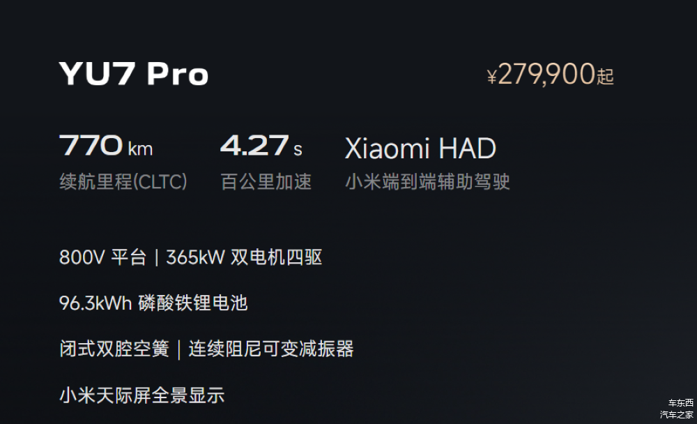 ▲小米YU7 Pro车型售价
