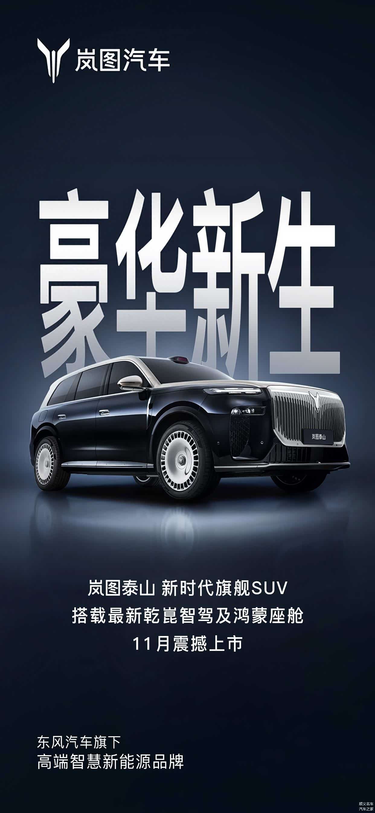 今天,岚图汽车宣布,他们全新打造的旗舰SUV——岚图泰山,将在11月份正式上市。这款车可以说是岚图这几年技术的全面展示,凭借多项领先的技术配置,它有望在全尺寸豪华SUV市场中树立新的标准。
