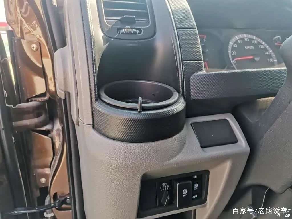 中控台两侧贴心的设置了水杯架,可利用上方空调出风口为饮品进行加热或降温,这样人性化的设计必须点赞。左侧水杯架下方是灯光角度调节旋钮及DPF按键。