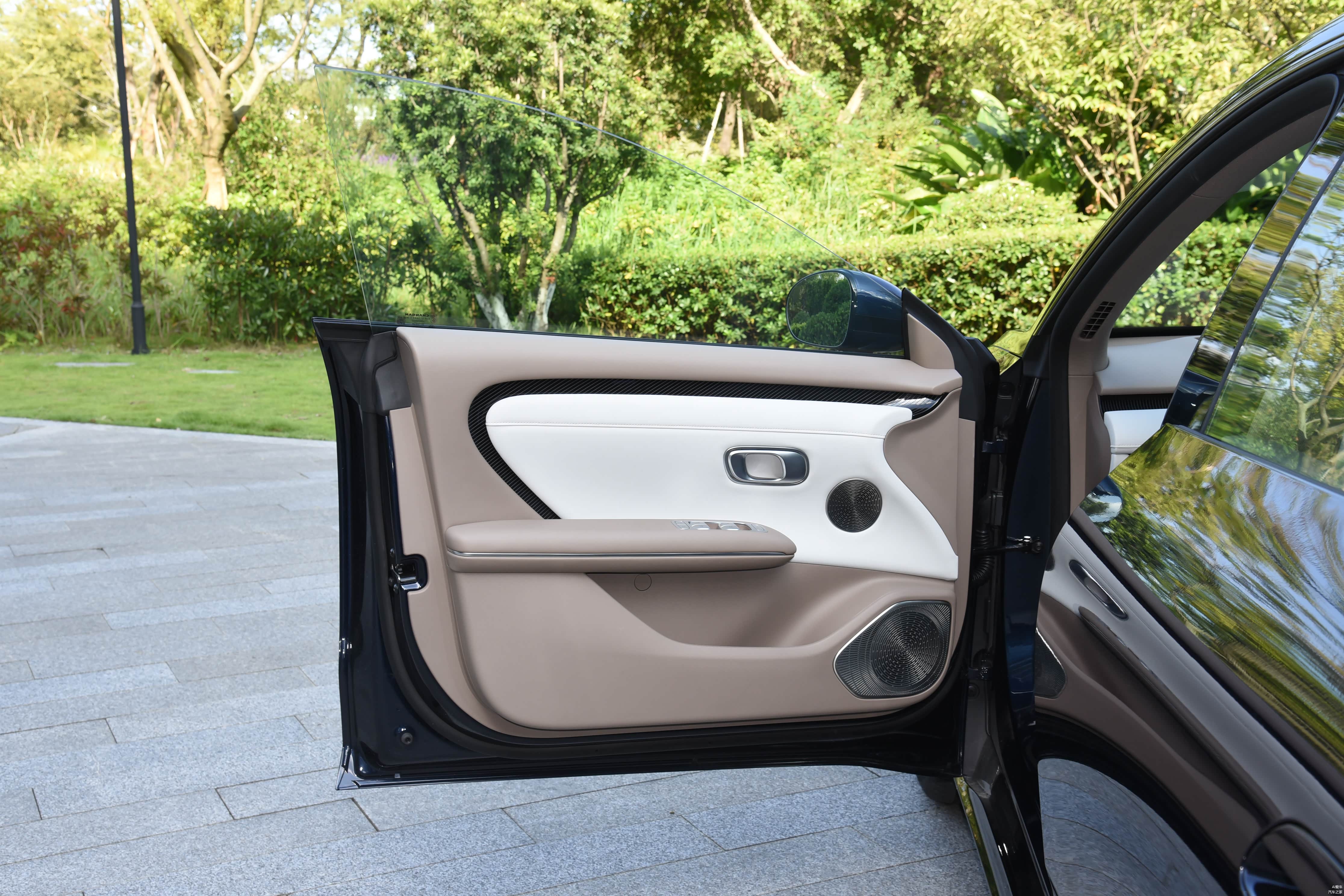 配置堆料有点猛。全车零压电动座椅带按摩加热通风,后排最大倾斜145度接近平躺。4.6升车载冷暖冰箱温度范围零下6度到50度,67瓦USB Type-C快充,256色氛围灯,20扬声器NEVO Sound音响系统。这些配置往上两个级别的车才常见,现在下放到12万级产品上。
