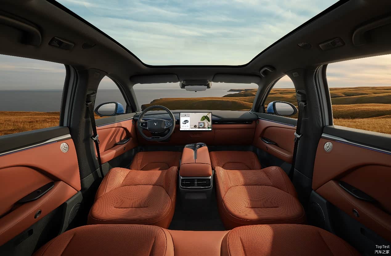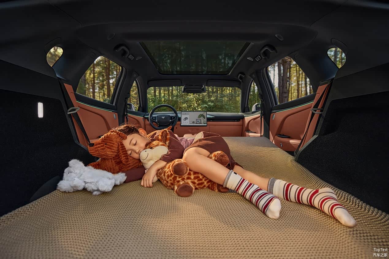舒适性方面,新车前排座椅支持180度放平+8点按摩,具备通风、加热功能;配备18扬声器音响系统与HIFI级功放,搭配1.66平方米穹顶天幕及电动遮阳帘。座舱采用11.75㎡牙胶级面料与吸附降解材料,实现“零醛零苯”,常温甲醛含量0.006mg/m³,50度高温下0.06mg/m³。