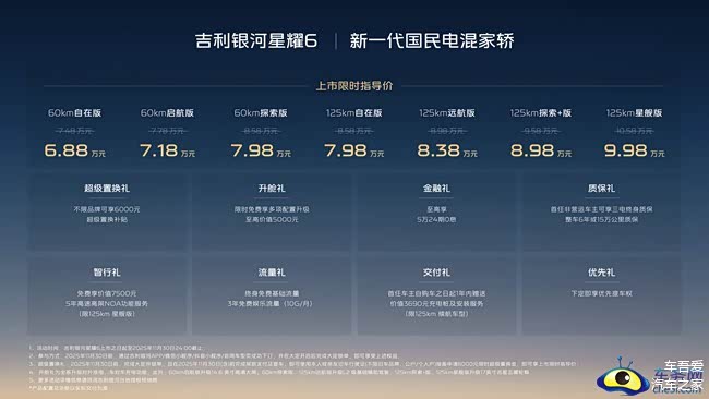 全文总结:吉利银河星耀6以6.88万起的限时指导价,在紧凑型家轿市场树立鲜明价格优势。从年轻化外观到实用内饰,从经济动力到基础安全配置,每一项设定都贴合年轻家庭“代步 家用”的核心需求。凭借吉利品牌背书与高性价比组合,该车上市后有望在入门级家轿市场中快速突围,成为年轻消费者购车的优选之一。