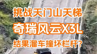 惊魂一刻!奇瑞风云X3L天门山天梯溜车撞栏。