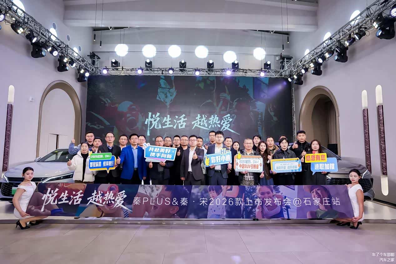 11月3日,悦生活 越热爱 秦PLUS(图片 | 参数 | 询价)&秦·宋2026款上市发布会在石家庄时光宴会艺术中心隆重举行。河北区域主流媒体齐聚现场,备受瞩目的第二代秦PLUS及2026款秦L DM-i&宋L DM-i以及宋Pro DM-i四款新品联袂登场,以全面进化的设计、混动、智能与安全技术,共同诠释了比亚迪在主流家用轿车与SUV市场的强大实力。