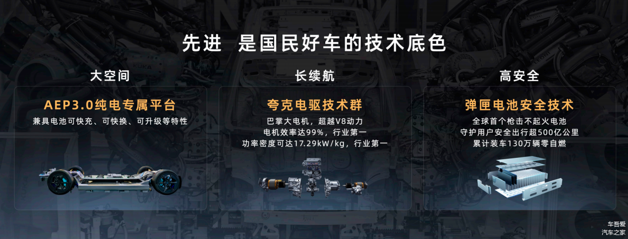 “先进”是技术底色,依托国内首个全铝合金纯电专属平台、行业领先的夸克电驱以及累计装车超130万组、守护用户500亿公里出行,至今“0自燃”的弹匣电池,广汽埃安确保了产品在空间、续航与安全等核心维度上的硬核实力。而面对用户对智能驾驶的渴望,更率先将激光雷达辅助驾驶技术引入15万元内车型,并积极推进L4级Robotaxi的规模化运营,旨在让更可靠的智能驾驶走入千家万户。