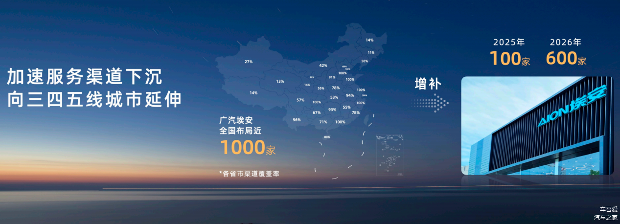 在服务网络拓展方面,广汽埃安持续深耕三四五线城市,在全国近1000家销售网络布局的基础上,今年计划新增100家,2026年扩展至600家,让“贴心服务,就在家门口”成为更多用户的真实体验。同时,品牌全面引入NPS体系,设置超过160项细化指标,以用户反馈驱动服务持续优化。