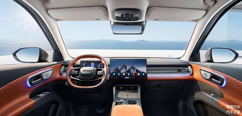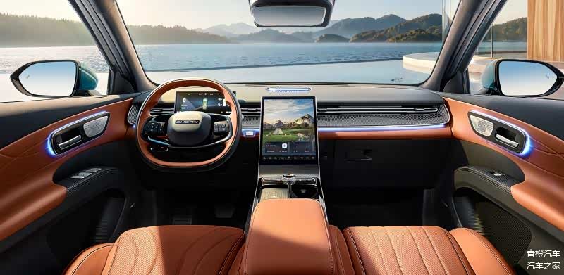 新车全系标配10.25英寸全液晶仪表屏,“豹款”采用13.2英寸竖立式大屏,并同时保留部分实体按键与旋钮,中控鞍座布置50W风冷单槽无线充电面板和双杯座。“虎款”搭载15.6英寸悬浮式中控大屏,实体按键被大幅削减,中控鞍座布置有双手机槽和50W风冷单槽无线充电面板,双杯座和驾驶模式控制旋钮被布置于其后方。