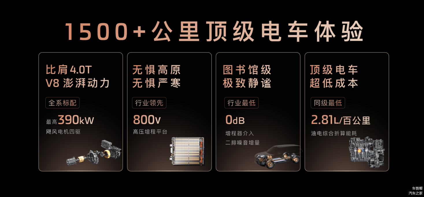 不仅如此,行业首创的ERNC 2.0主动降噪技术,真正做到了增程器介入时的绝对无感,全程享受图书馆级的极致静谧;同级最长402km CLTC纯电续航与1508km综合续航,让用户彻底告别续航和补能焦虑;油电综合折算能耗更是低至惊人的2.81L/百公里,同级最低。让一台全尺寸大六座SUV,也能拥有电车一样超低的用车成本。