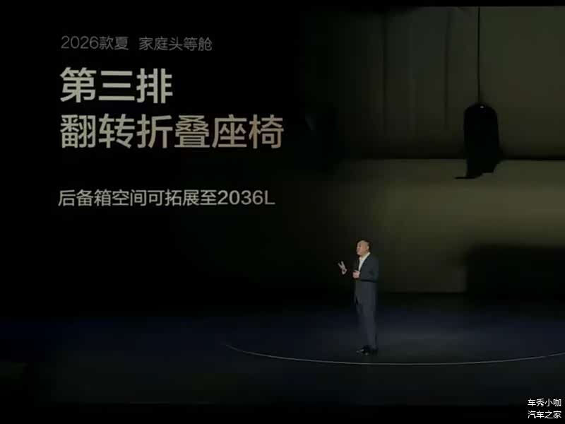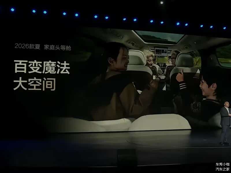 后备厢容积为470L,拓展后达2036L。前后分段式天窗,前部可电动开启,顶配车型后排还提供了15.6英寸娱乐屏,高配车型配备车载冷暖箱,根据配置的不同,全车配备12或24扬声器杜比全景声DiSound音响,最高选装28扬声器,并支持便携可拆卸户外音箱。