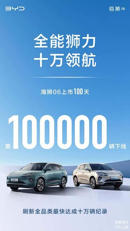 10月31日,比亚迪海洋网“高能超享SUV”海狮06上市百日迎来第十万辆下线,创下全品类车型最快破十万辆纪录,以惊人速度展现爆款实力,树立主流SUV新标杆。