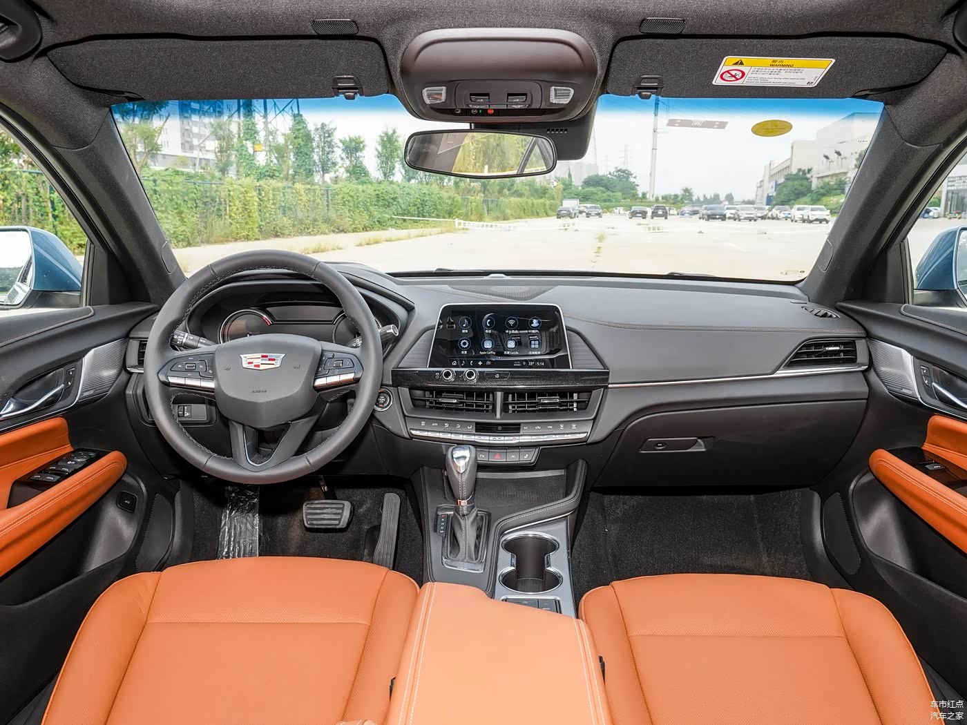 进入车内,CT4的内饰设计虽然谈不上科技感,但用料还不错,有大面积软质材料包裹,真皮座椅的打孔处理和金属装饰都体现了豪华质感。