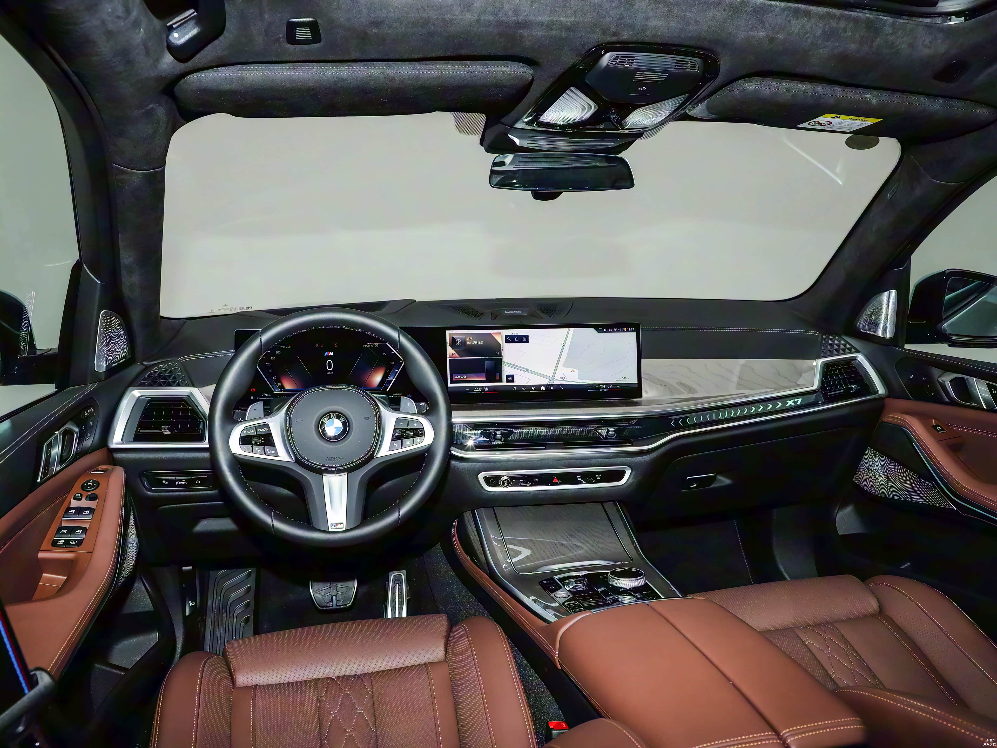 智能化配置搭载14.9英寸中控触控屏和12.3英寸全液晶仪表盘,配备iDrive系统,车机芯片为高通骁龙8155P和英特尔A3960双芯片方案。语音识别支持控制多媒体、导航、电话和空调,手势控制功能选装价格3500元。车联网标配4G网络,升级5G需要选装3200元,支持OTA升级。标配HUD抬头显示和前排手机无线充电。