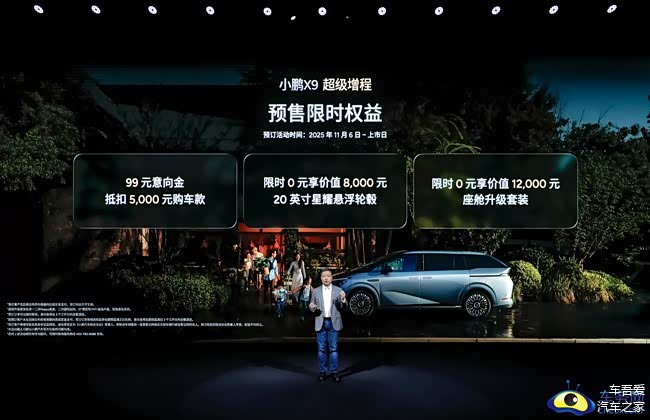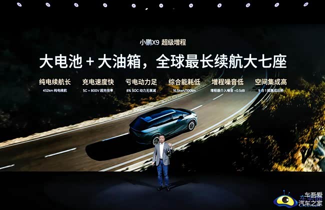 2025年11月6日,小鹏汽车在广州小鹏科技园举办鲲鹏超级增程技术发布会,正式推出品牌首款搭载该技术的车型—— 小鹏X9(图片 | 参数 | 询价)超级增程版。新车定位中大型7座MPV,共推出Max和Ultra两个版本,预售价分别为35万元与37万元,并计划于本月内完成上市交付。作为小鹏进军增程赛道的战略级产品,X9超级增程版以"1602公里综合续航452公里纯电续航"的核心优势,重新定义新能源MPV的出行体验边界。