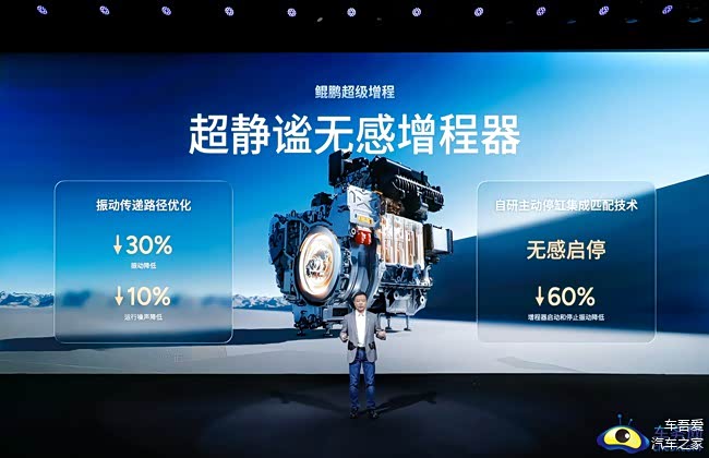 发布会上,小鹏汽车重点解读了全新一代增程技术解决方案——鲲鹏超级增程。该技术通过核心三电系统的全面升级,针对性解决传统增程车型面临的纯电续航短、充电速度慢、综合能耗高、亏电动力弱、增程噪音大五大痛点。