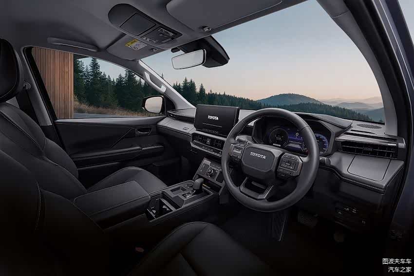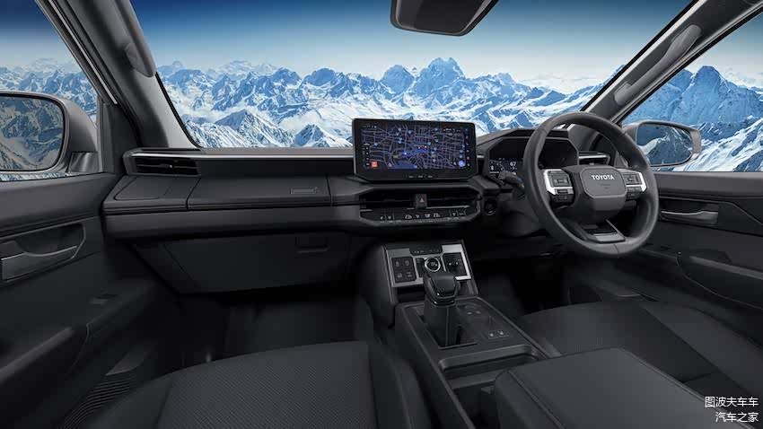 车舱的设计灵感来自 兰德酷路泽,有着直立、棱角分明的设计,以双 12.3 寸屏幕搭配可以调整四驱的实体按键,车内也有着无线充电板、后座 usb 充电等,这一代的 海拉克斯 更搭载同类产品中首款采用电动助力转向的车型。