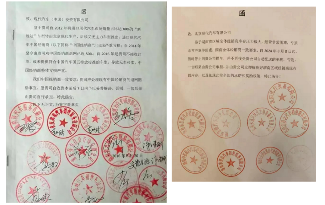 另一方面,北京现代早期拥有超过800家经销商,这本应是其重要资产。但在销量大幅下滑后,庞大的渠道网络已成为沉重的负担。经销商盈利困难、退网传闻不断,渠道稳定性面临严峻挑战。去年年底,北京现代还遭遇湖南省九家经销商联合“逼宫”。
