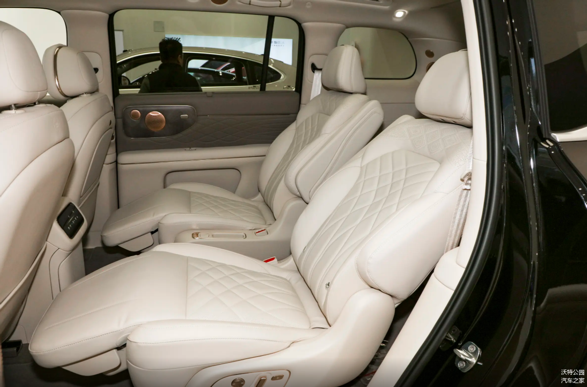 内饰方面,整体设计风格和智己LS6类似,屏幕方面使用27.1英寸5K MiniLED屏和15.6英寸3K MiniLED副驾娱乐屏组合,方向盘可选半幅造型。豪华配置肯定也是一点没少,Nappa真皮座椅、全车三个零重力座椅,在座椅按摩功能上,创新加入了机械臂来提升按摩力度,比普通气动按摩强度更强。还和B&O合作了一套25扬声器、3472W总功率的音响系统,听感据说很不错。二排21.5英寸、4K分辨率的娱乐屏不用多说了,也是不能少的。