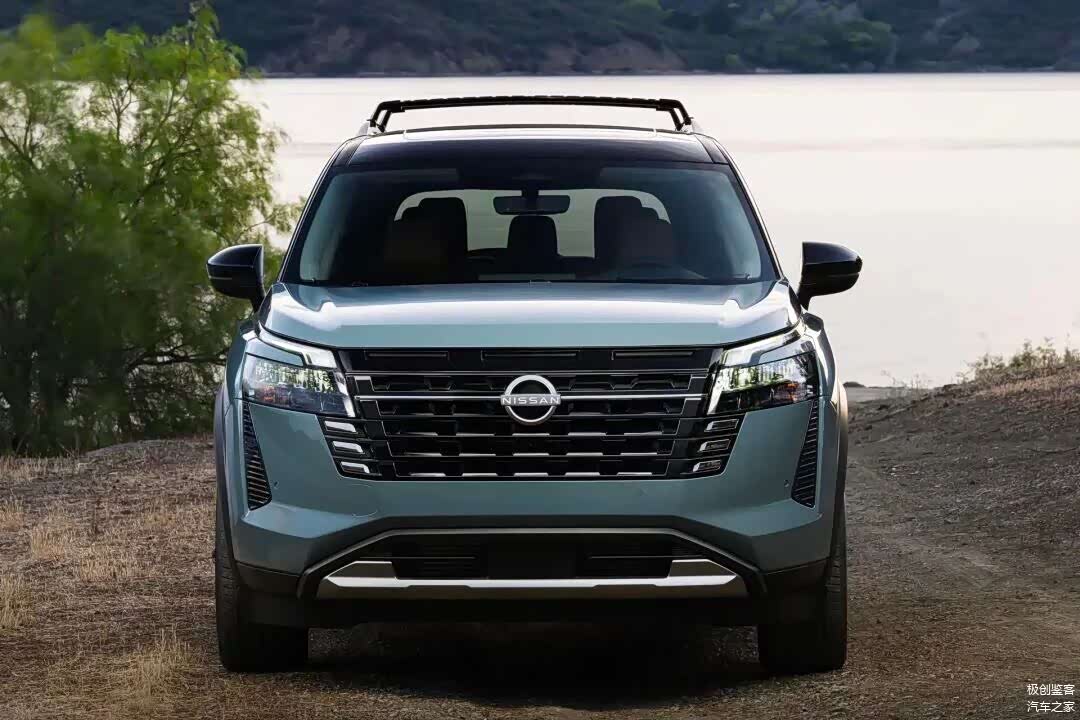 车头部分,这款车采用了焕然一新的前脸造型。格栅摒弃了银色边框,转而采用更宽阔、更流畅的设计,并配以更小巧的网格内衬——这与最新款的Kicks和Murano的设计风格一脉相承。格栅还向保险杠边角进一步延伸,恰到好处地嵌入大灯下方,勾勒出更动感的视觉效果。