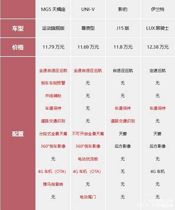 该给个购买意见了,外观风格,这几款车各有不同,如果你是个循规蹈矩的人,那就买一辆合资品牌车就好了。其实这四款车,车载君其实更推荐MG5天蝎座,它的表现更均衡更有性价比,配置和动力表现都不错,而且看二月紧凑级车型销量,MG5表现也非常好,说明大家也都认可它。那如果你对科技感和未来感很钟情,那UNI-V相对更适合你。影豹由于之前的过度营销,本身还算不错的产品,被蒙上了“屌丝”阴影。如果你不介意,也可以考虑。好了,到你做出选择的时候了,你会选择哪款呢?