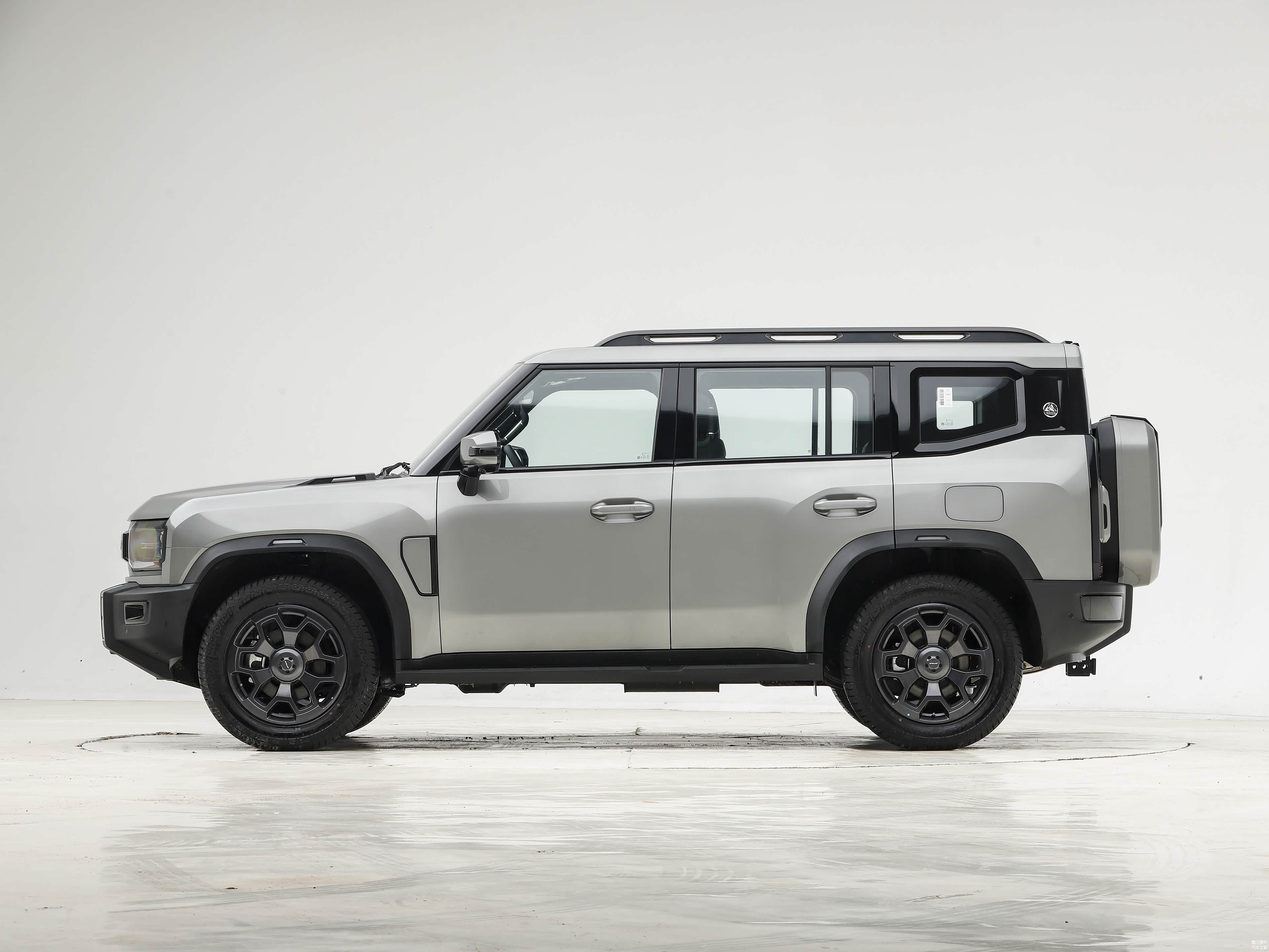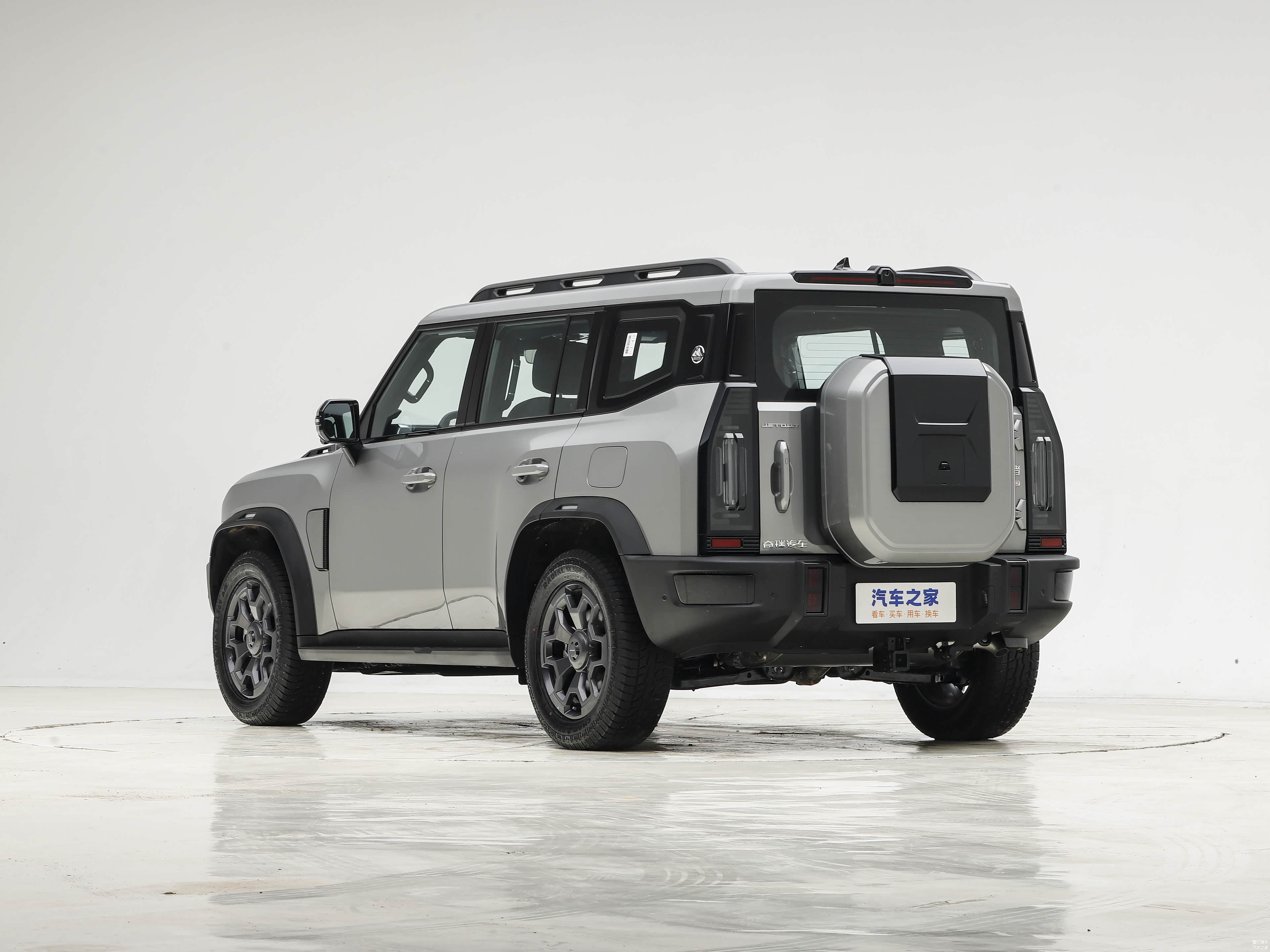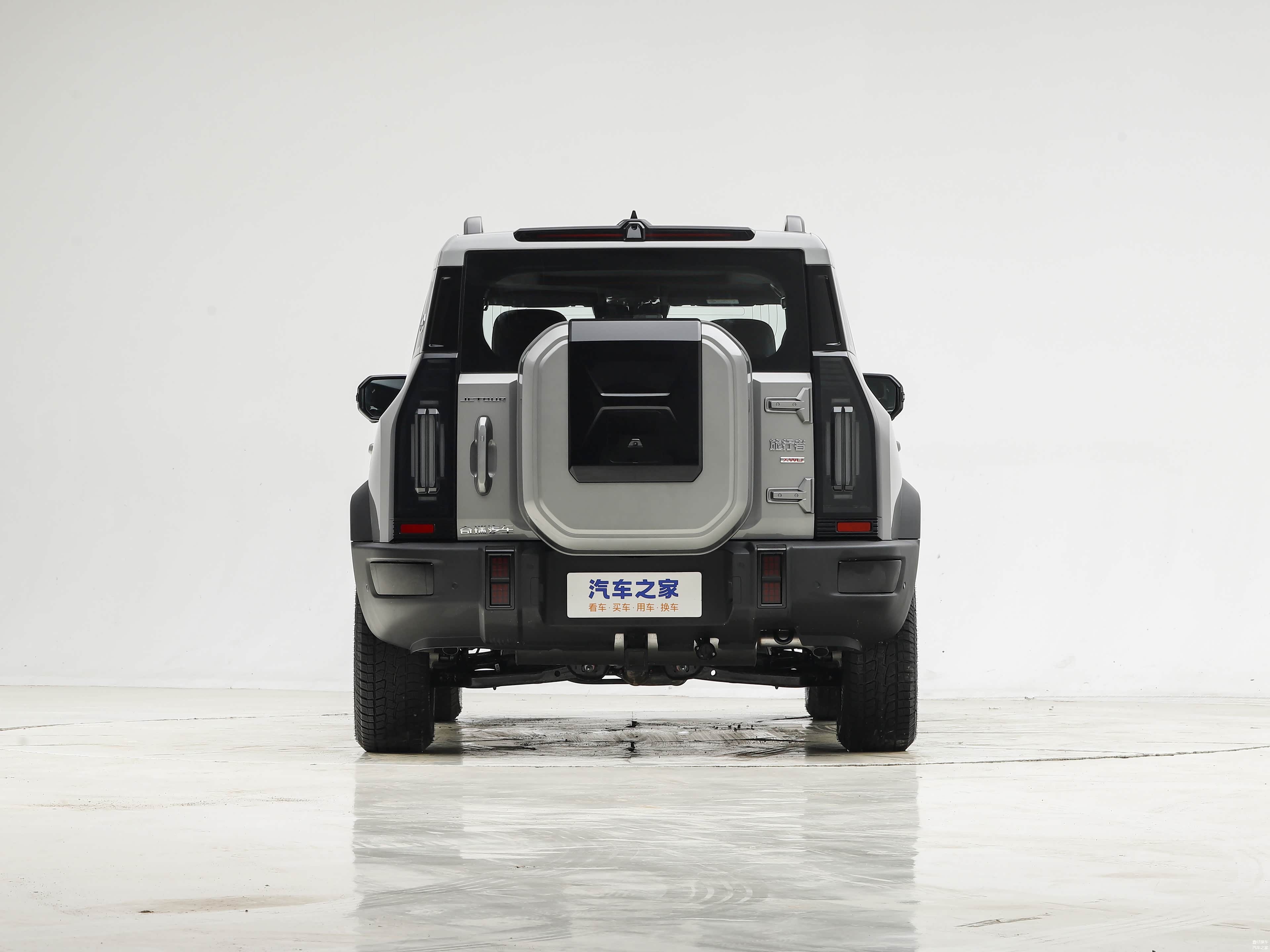 车尾布局功能性明确,车顶集成摄像头,配备后窗雨刷及外挂式备胎。尾灯采用纵向排列,后包围延续前包围设计语言,体现整车一致性。整体设计保留越野实用性,提升后方视野和操作便利性。