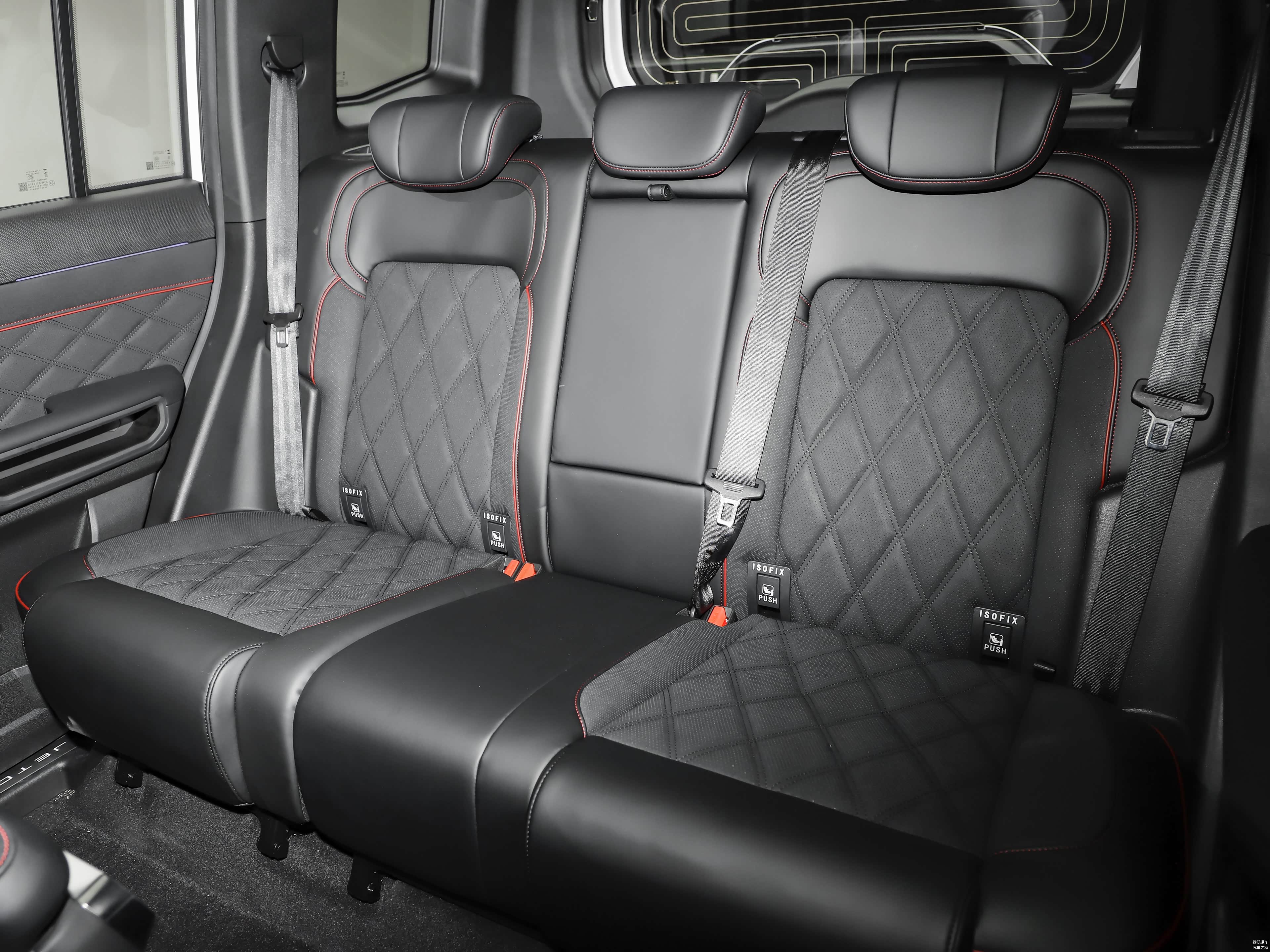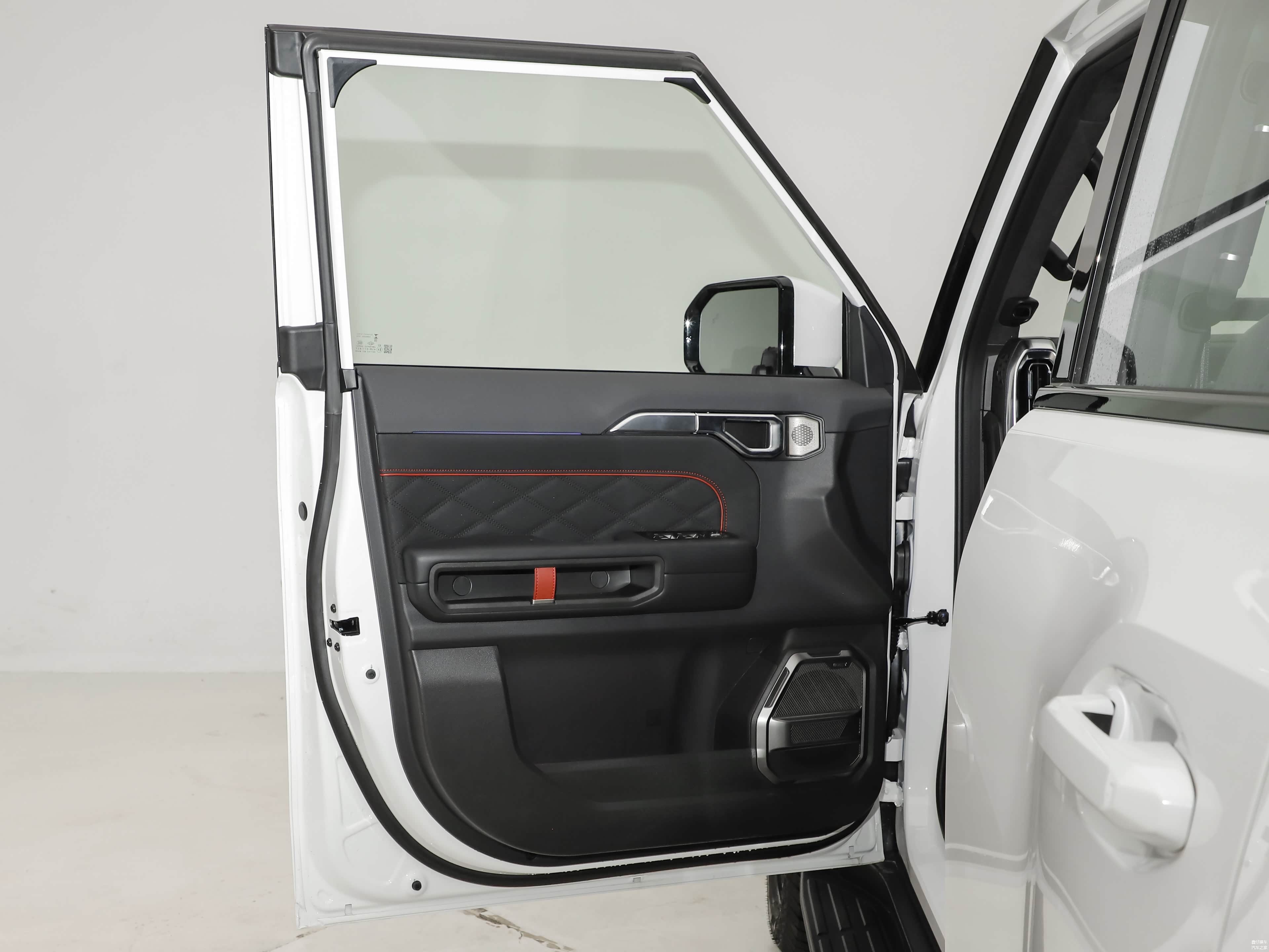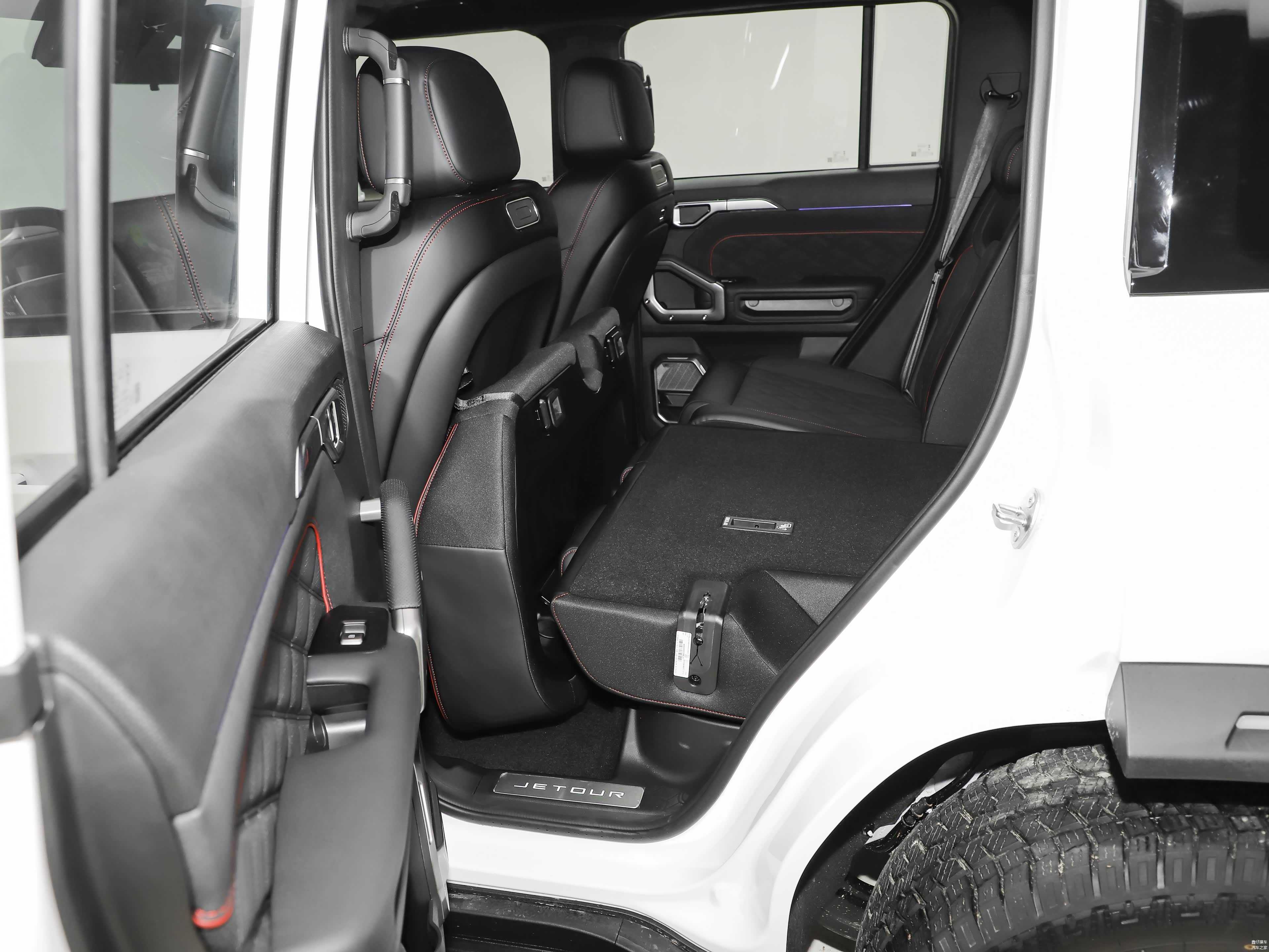 车尾布局功能性明确,车顶集成摄像头,配备后窗雨刷及外挂式备胎。尾灯采用纵向排列,后包围延续前包围设计语言,体现整车一致性。整体设计保留越野实用性,提升后方视野和操作便利性。